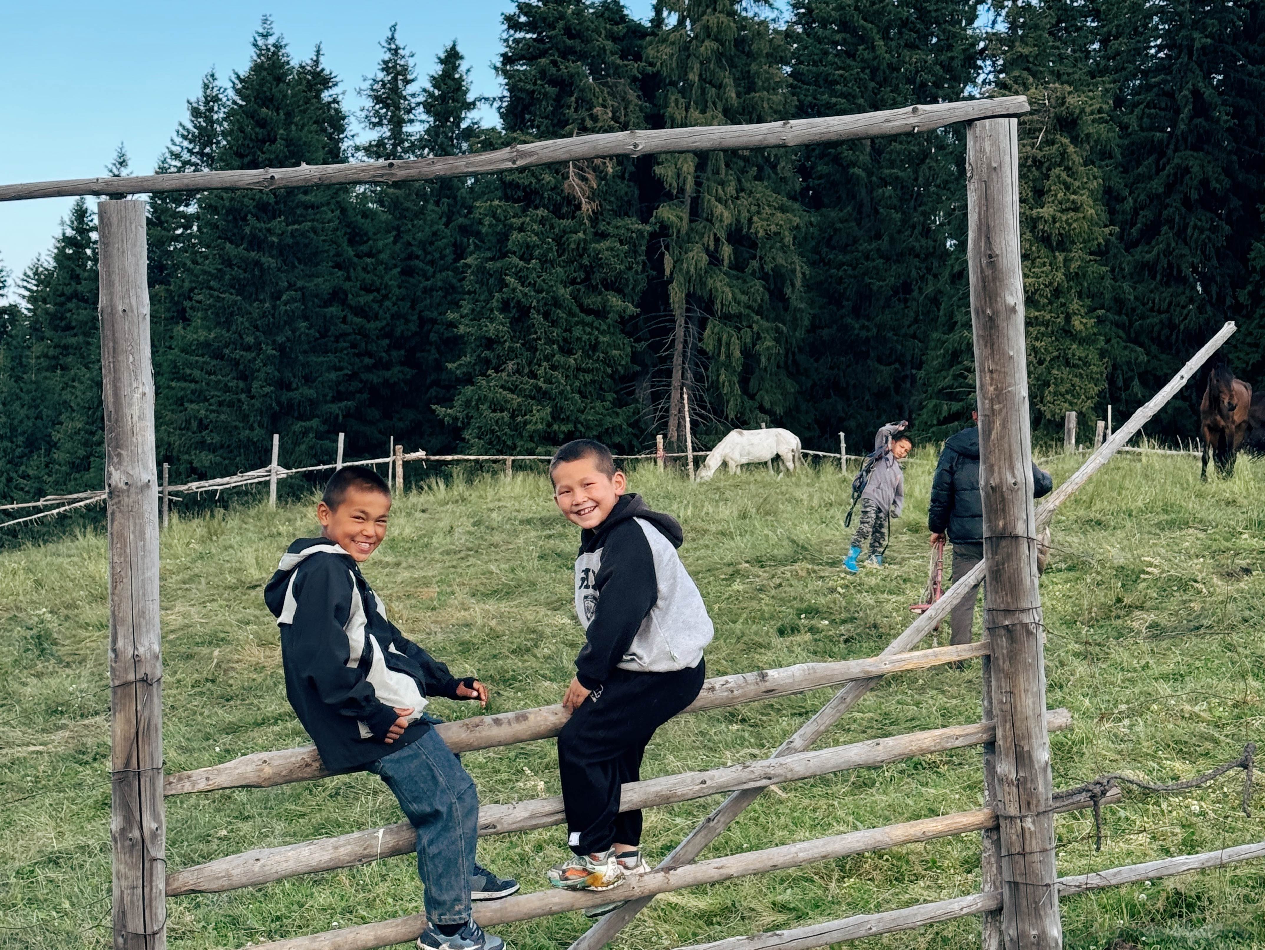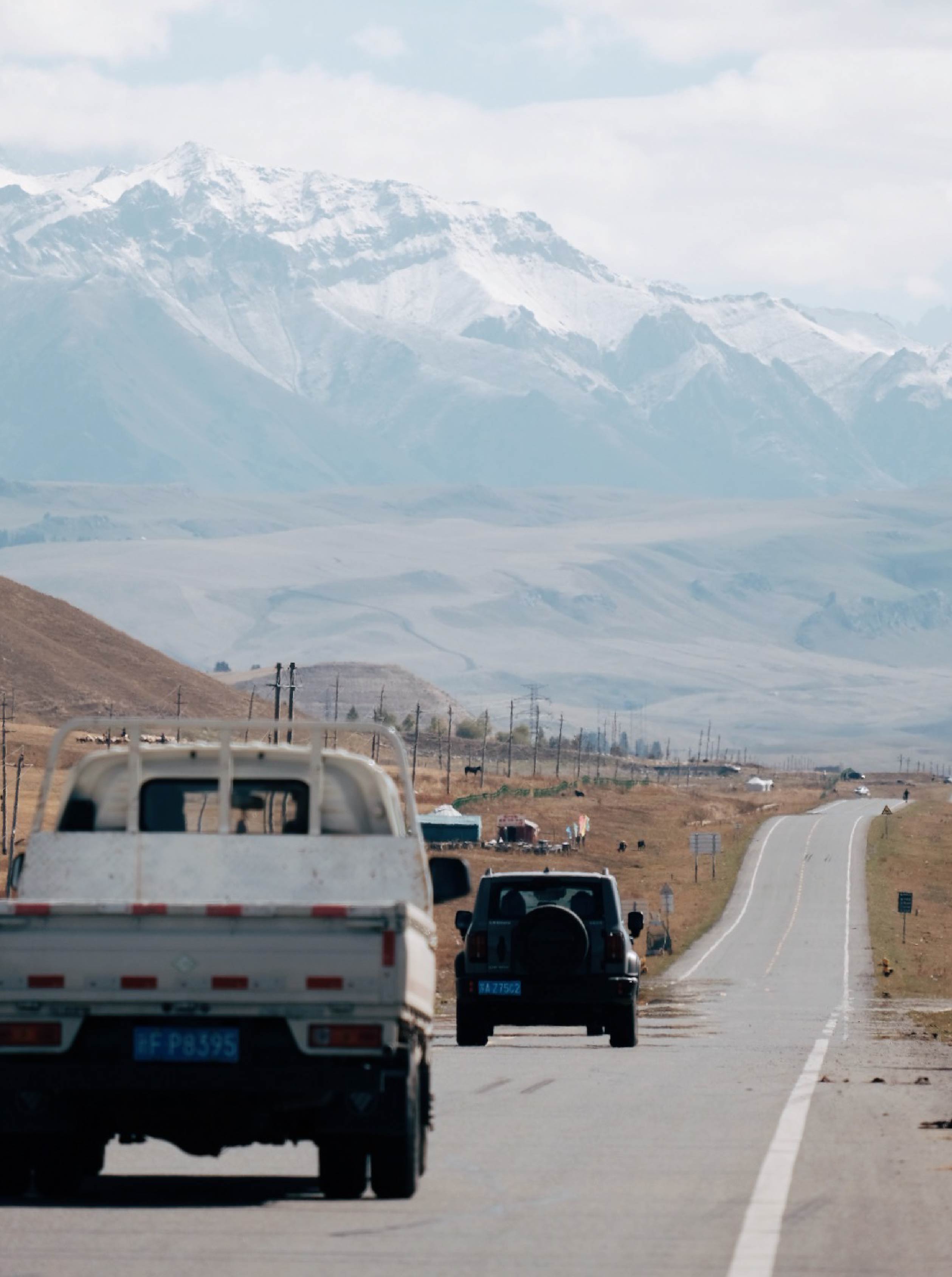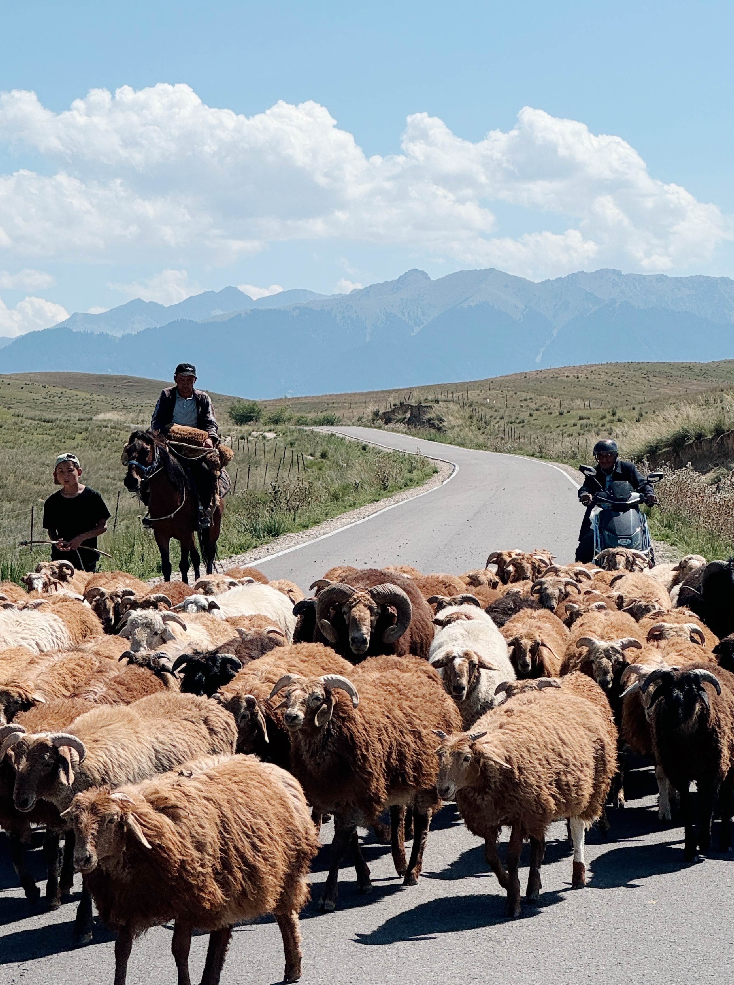 木拉提把手套遞給我,讓我幫忙把散落的草垛抬到貨車旁邊,我才知道這一捆乾草有多扎實——只用一隻手根本拿不起來、拿著走幾步就累了、即使帶著手套依然會被尖銳的草梗刺痛。正當我用螃蟹走路的姿勢,滑稽地抬著草垛一步一步往前時,木拉提跟大哥已經把好幾捆草集中到車邊了(他們居然能單手拿起20公斤重的草!)