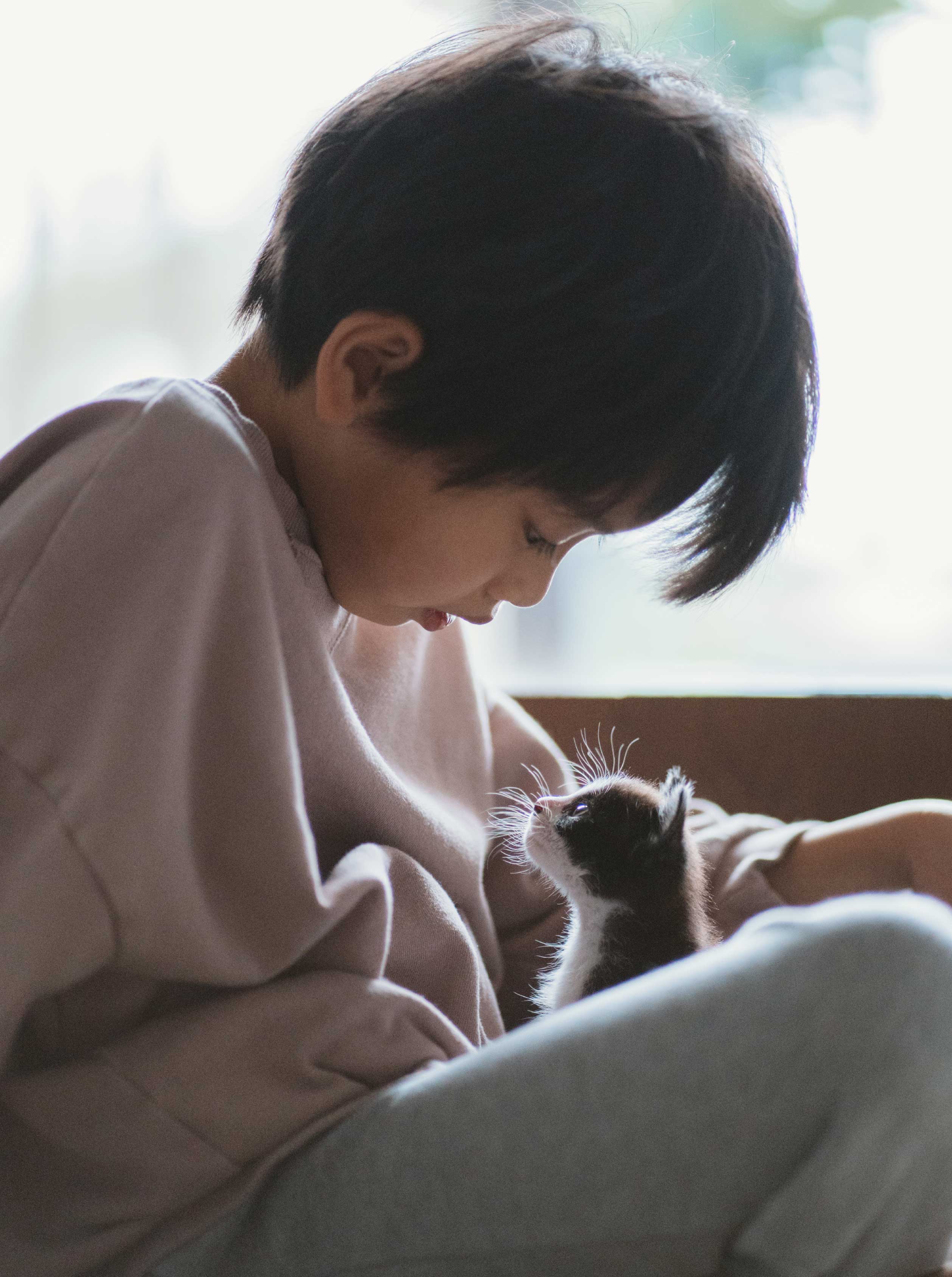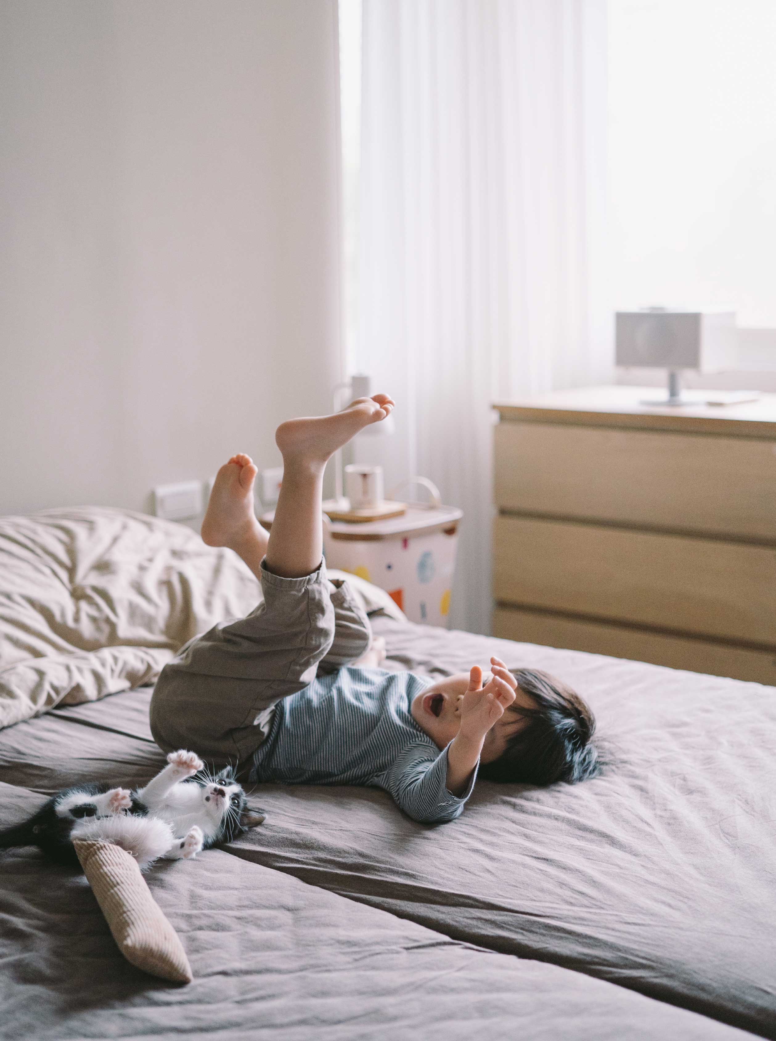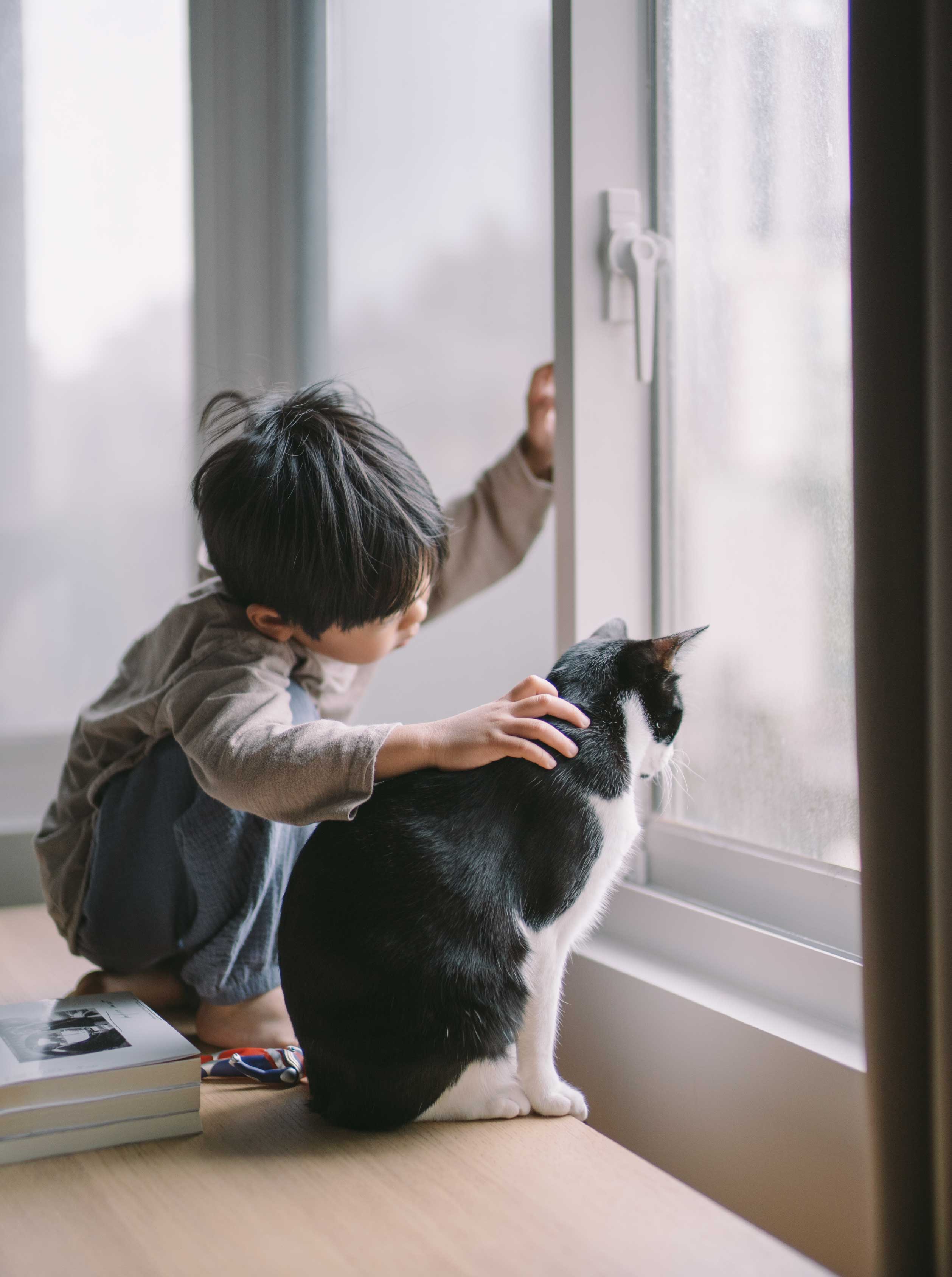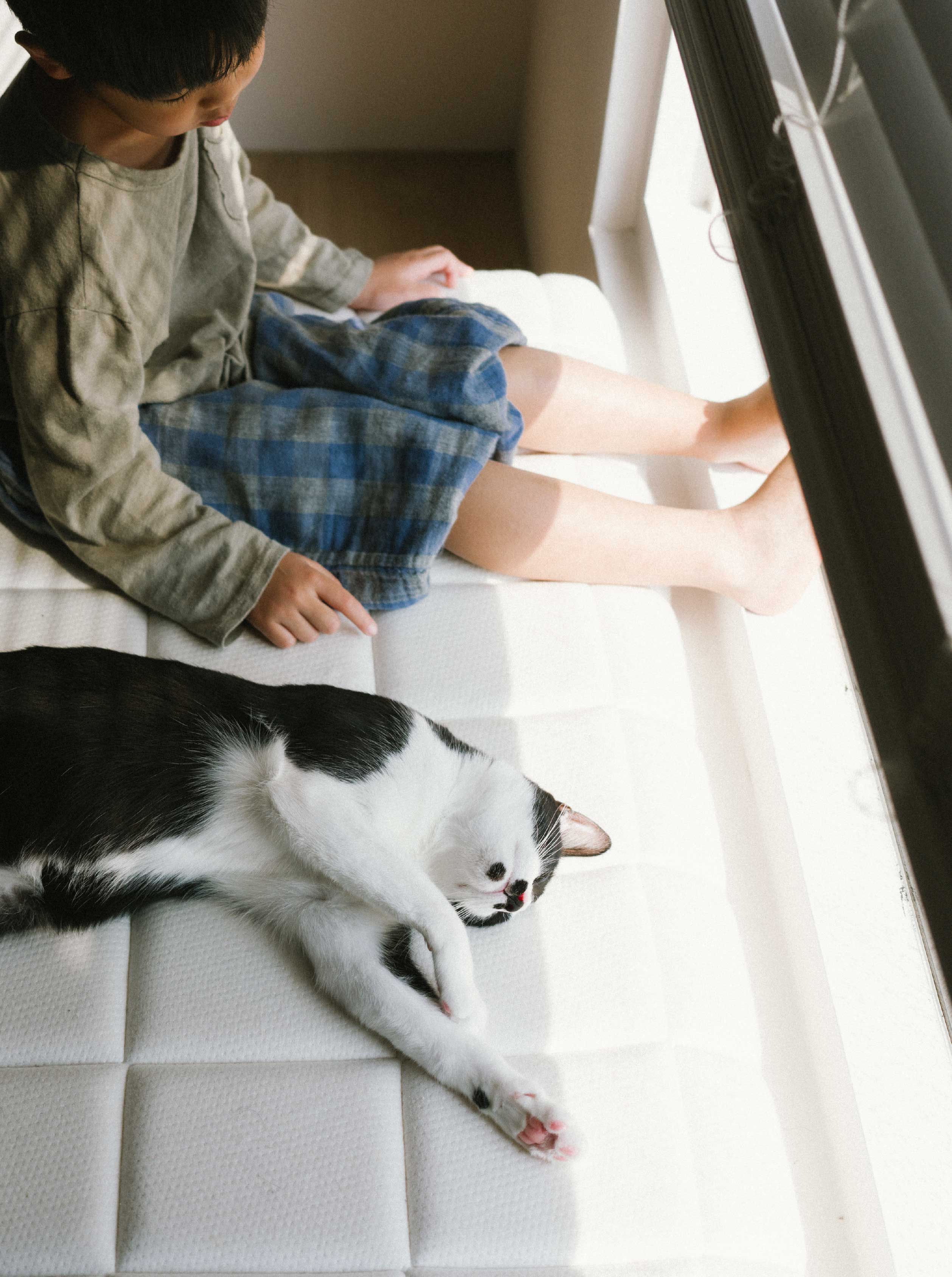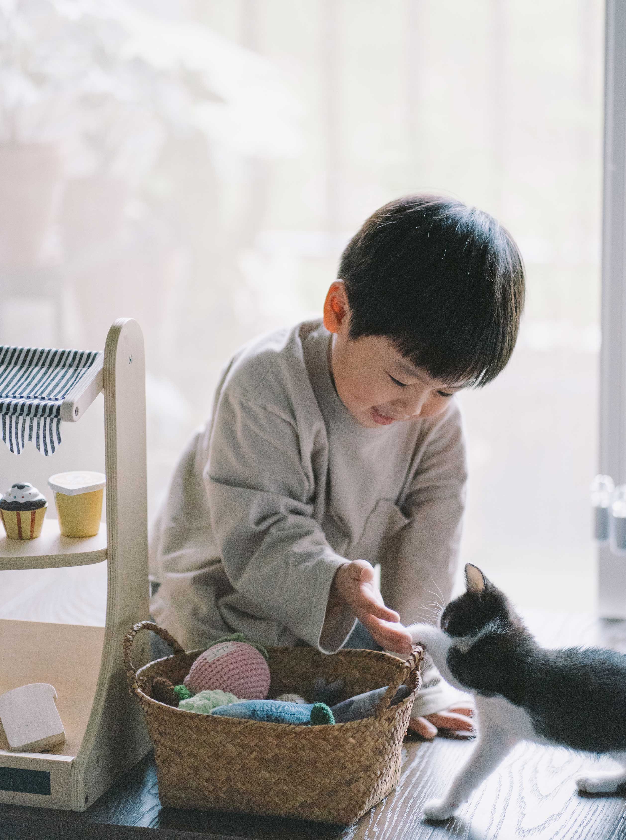 Sara:其實一開始我只是單純喜歡拍照。直到領養了咘咘和杜杜,因為想多記錄牠們與孩子的日常,這些作品後來被 Sony 看見,我也因此成為品牌講師。對我來說,這一切都不是刻意規劃的,再加上曾經歷過兩隻貓因病或年老而離開,讓我更想透過攝影,好好把與牠們共處的片刻留下來。光線雖然一直是我特別喜歡也很注重的元素,但養貓之後,我開始好奇牠們眼中的世界,並嘗試用低角度攝影。我發現,同樣一個場景,不同的高度與視角會帶來完全不一樣的氛圍。「蹲下來」後的影像,往往比站姿更貼近、更親密,也更貼合貓與孩子的日常視角。