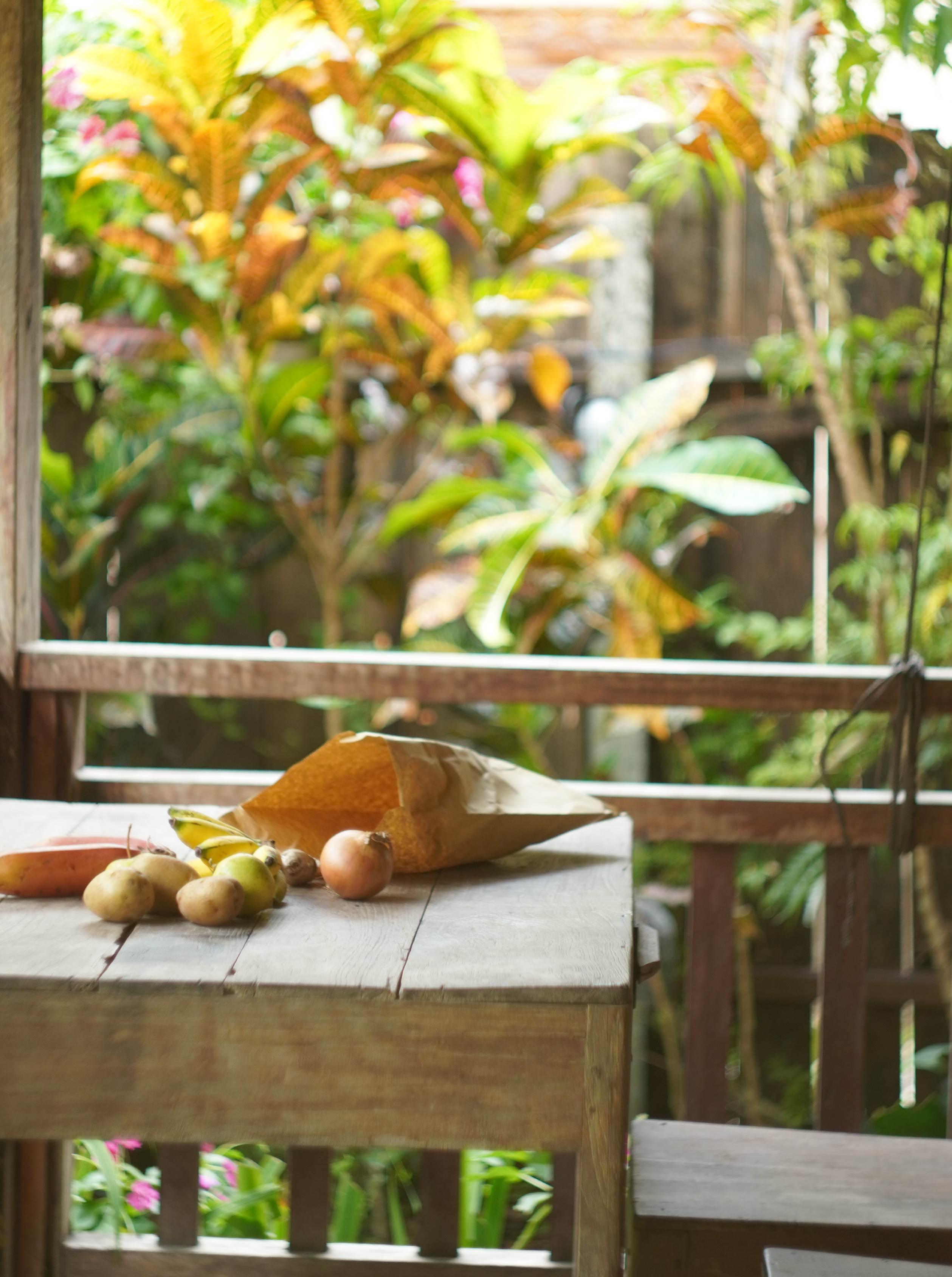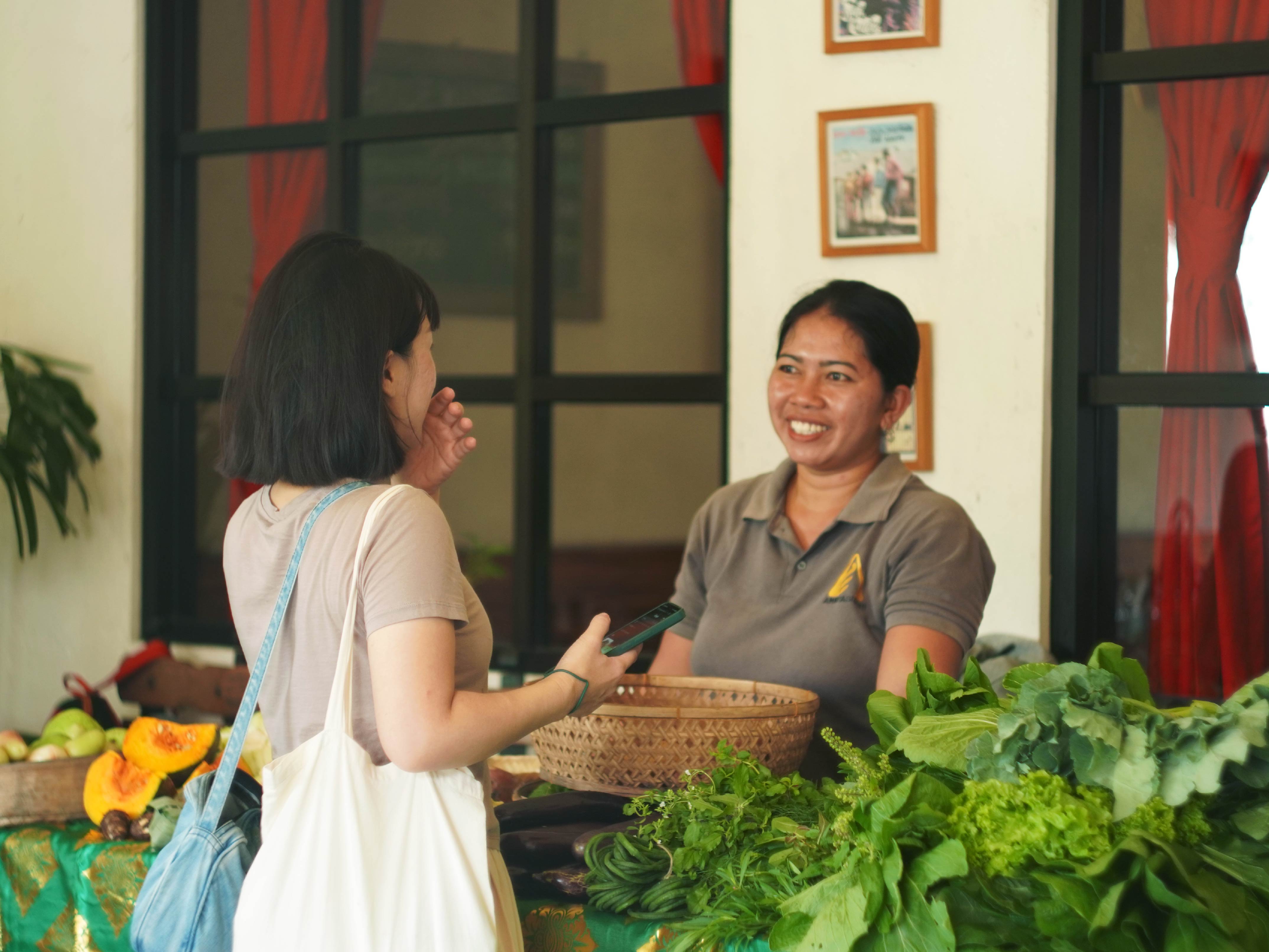 這天,我與剛好也在峇里島的臺灣朋友相約逛市集。我們喜歡親手觸摸每一珠有機蔬菜,與小農聊聊他們的理想與生活。正因為走進在地、與當地人深入交流,我才感受到在峇里島的自在,新鮮感與安心感同時存在,像回到家一般。也因這份自在,才能將買菜這件小事也過得像是一次精采的慶典。市集雖然不大,但攤位散發的溫度卻很飽滿,每個人都像是為了分享而來,而不只是販售。