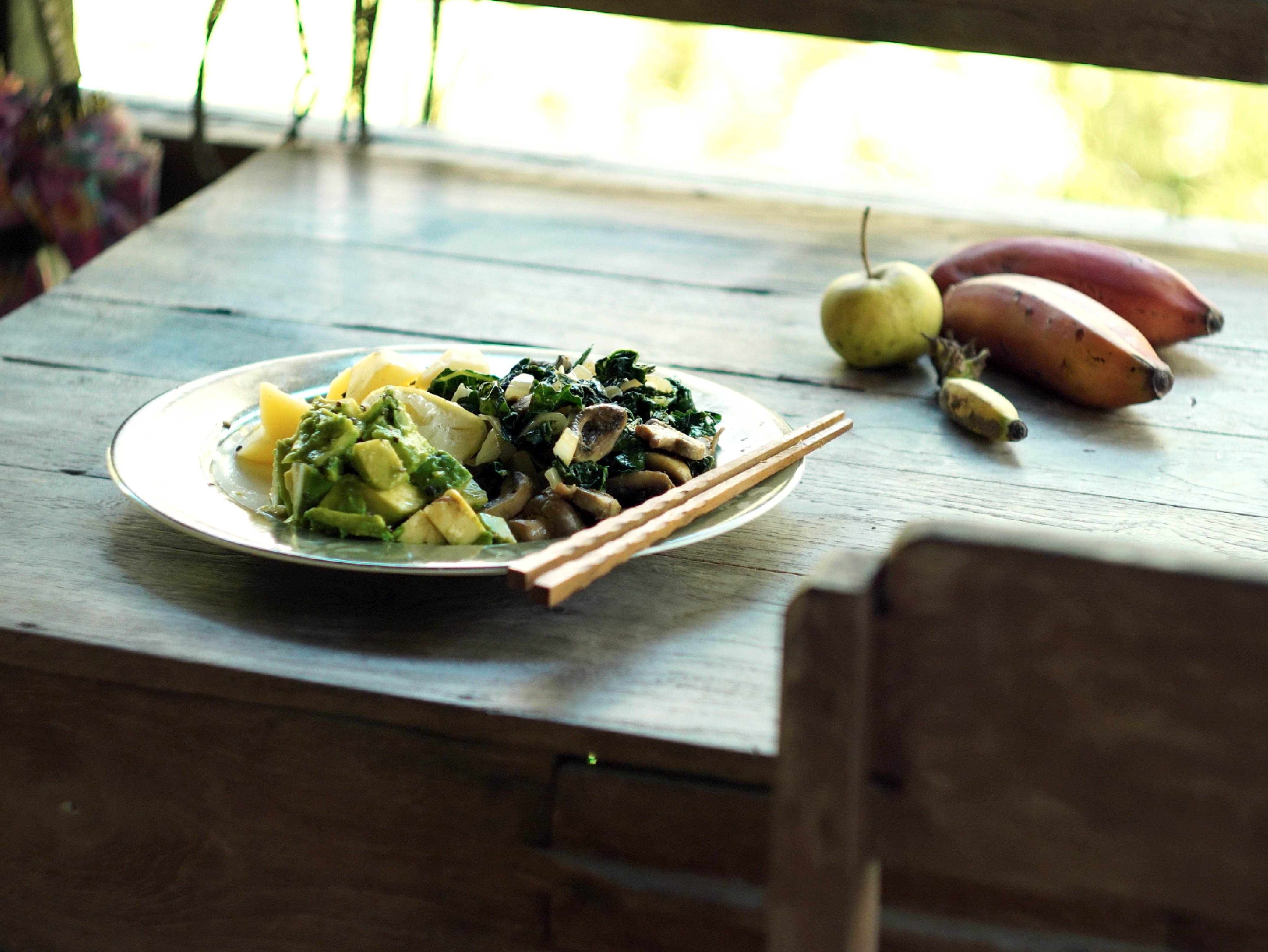 待在小木屋裡料理的時光,總以簡單為主。常常是一盤蘑菇炒青菜、一鍋香料粥,或是一片酪梨開放麵包。不同以往那個耗費時間追求繁複的自己,如今靜下心來才發現:當我專注於當下的過程,不必再證明什麼,無論做出什麼料理,都會是美味,也都是值得的;當空氣裡只剩下沸騰的聲音與香氣時,那份單純的滿足,遠比精緻擺盤更令人安心。