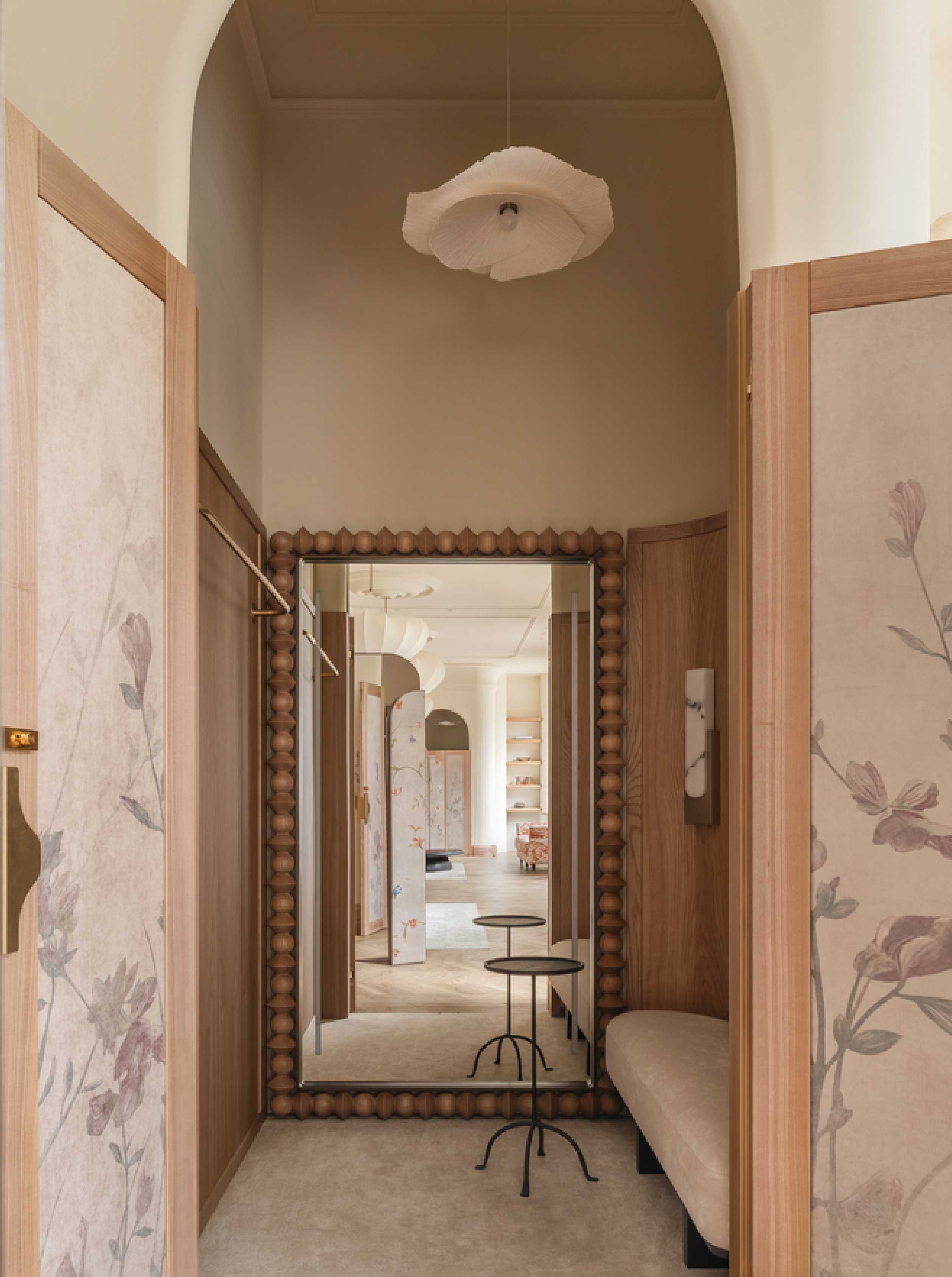在這樣的框架下,試衣間也成為關鍵場域之一,不只提供寬敞舒適的尺度、柔和的光線,甚至連鏡面角度都經過準確的規劃,達到最具修飾感的視覺效果。