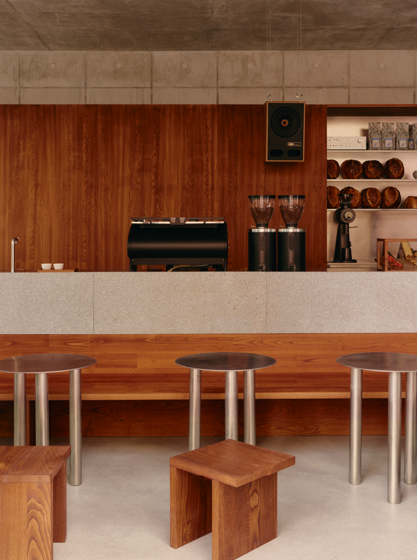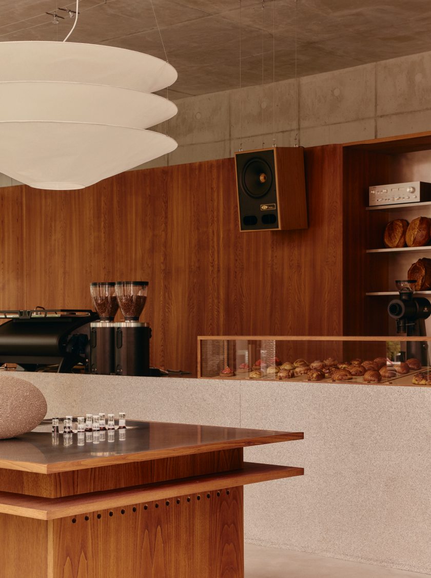 源自西班牙的咖啡與烘焙品牌Acid Café,始終堅持簡約、清新與細節至上的美學,而這間落腳於柏林的分店則延續品牌低調優雅的精神,從味覺、聽覺到觸感,塑造賓至如歸的感官體驗。考量到原始空間以清水混凝土外牆與鍍鋅鋼百葉構成骨架,具有鮮明冷冽的建築語彙。品牌期待在保留建築清冷美感的同時,導入更貼近人心的感官層次。