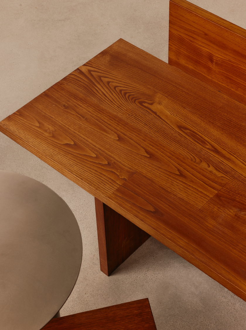 首先,善用位處街區轉角的優勢,臨街兩側安排落地大窗,僅以百葉遮掩,室內外無縫銜接,形成通透採光與開闊視野。更同時安排戶外座位區,打造輕鬆愜意的氛圍。一踏入室內,則被中央碩大的木質牆體吸引目光,採用栗木打造,鮮明的木紋肌理注入溫暖厚實的氣息,平衡過於冷硬的水泥基底。