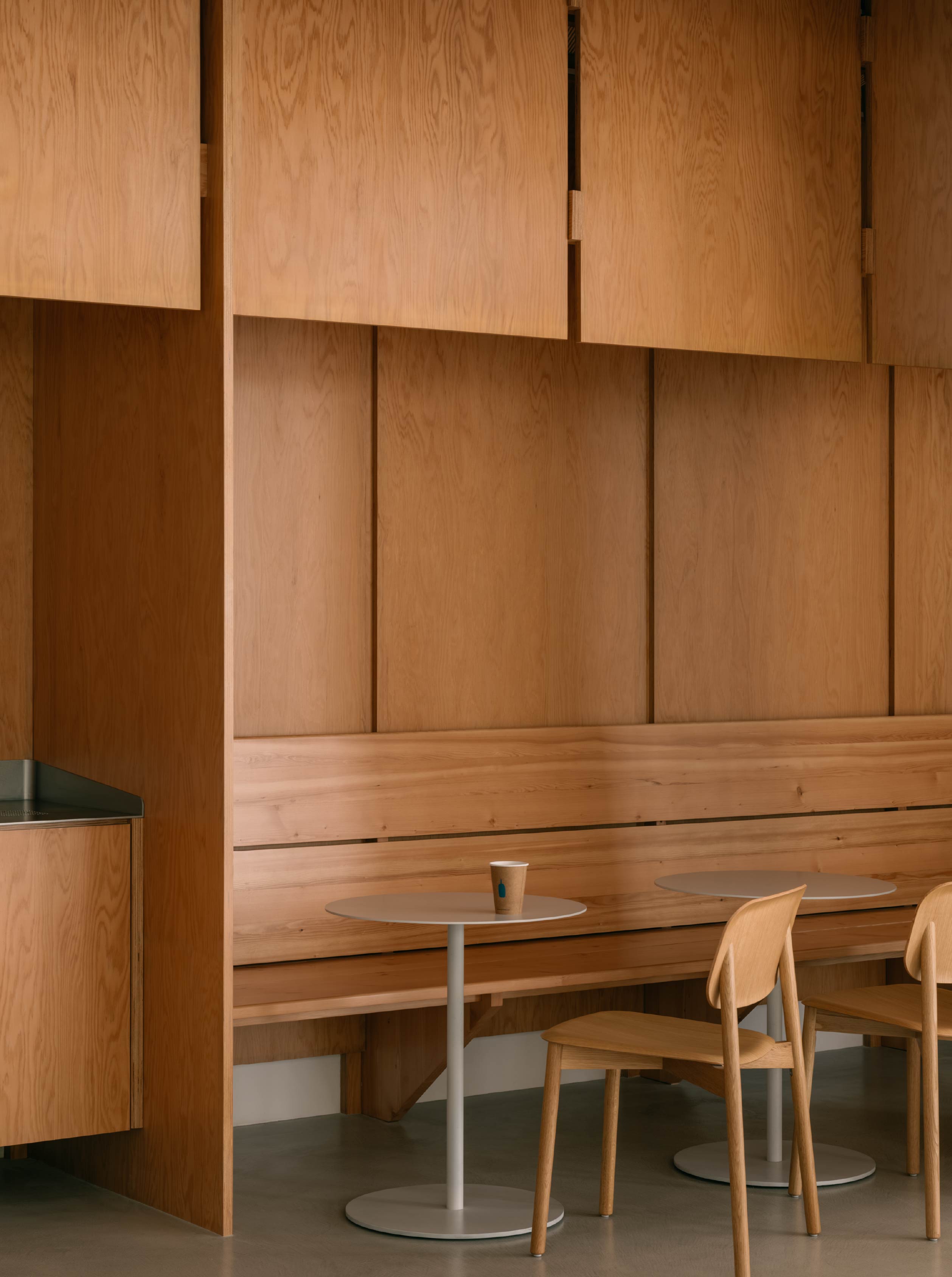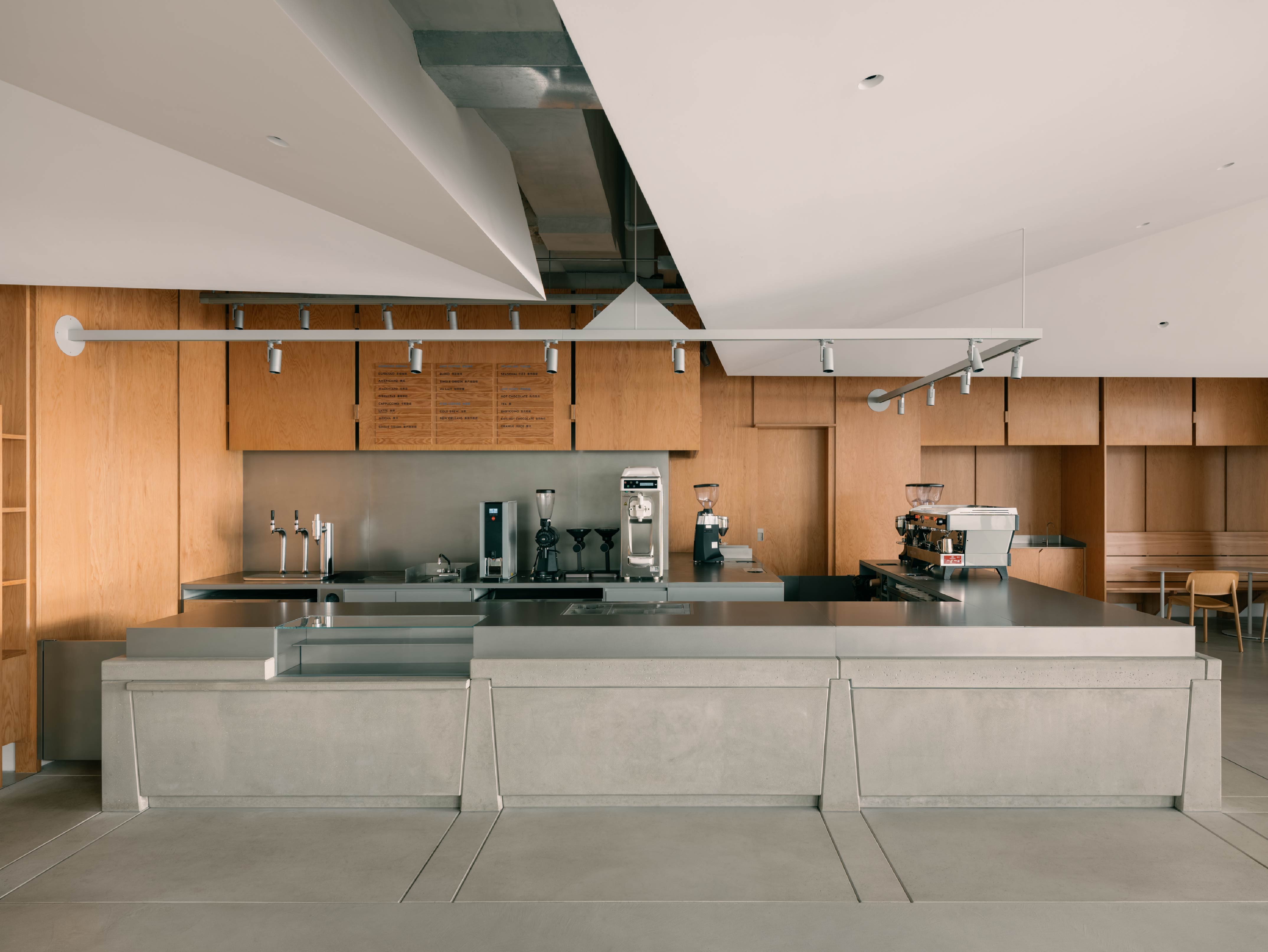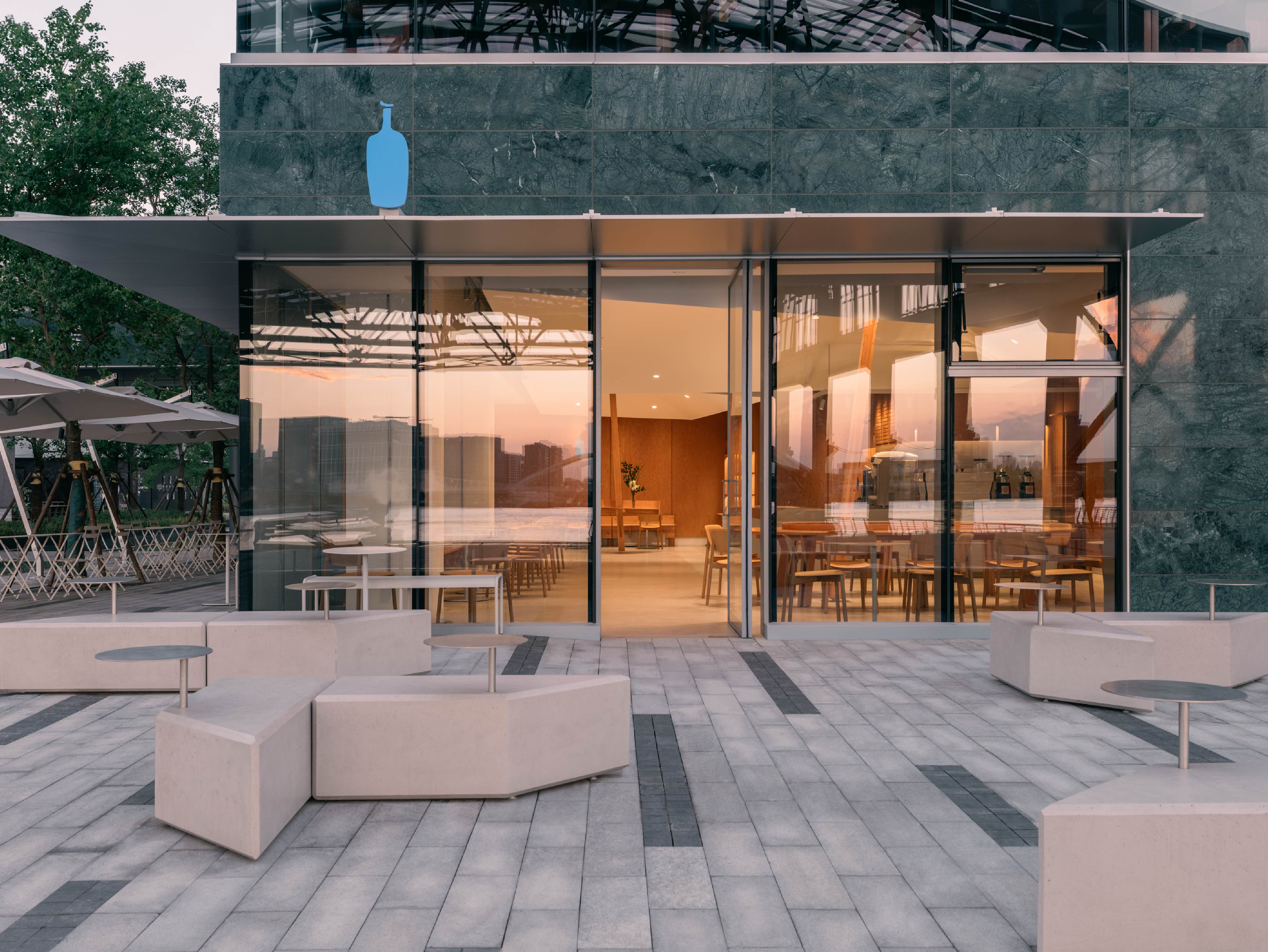 近年來,藍瓶咖啡在全球展店的設計,可以觀察到負責的設計團隊皆重新思考「空間應該如何融入城市」,試圖回應所在的建築條件、城市脈絡與文化特徵。坐落於上海西岸的藍瓶咖啡亦是如此,基地是原來的水泥廠舊址,負責規劃的atelier tao+c西濤設計以獨特的帳幕天花結構、溫潤的木質語彙,再加上延續工業氛圍的預製混凝土構件,將歷史與當代生活融合,成為人們停留、休息、觀望江景的新場所。