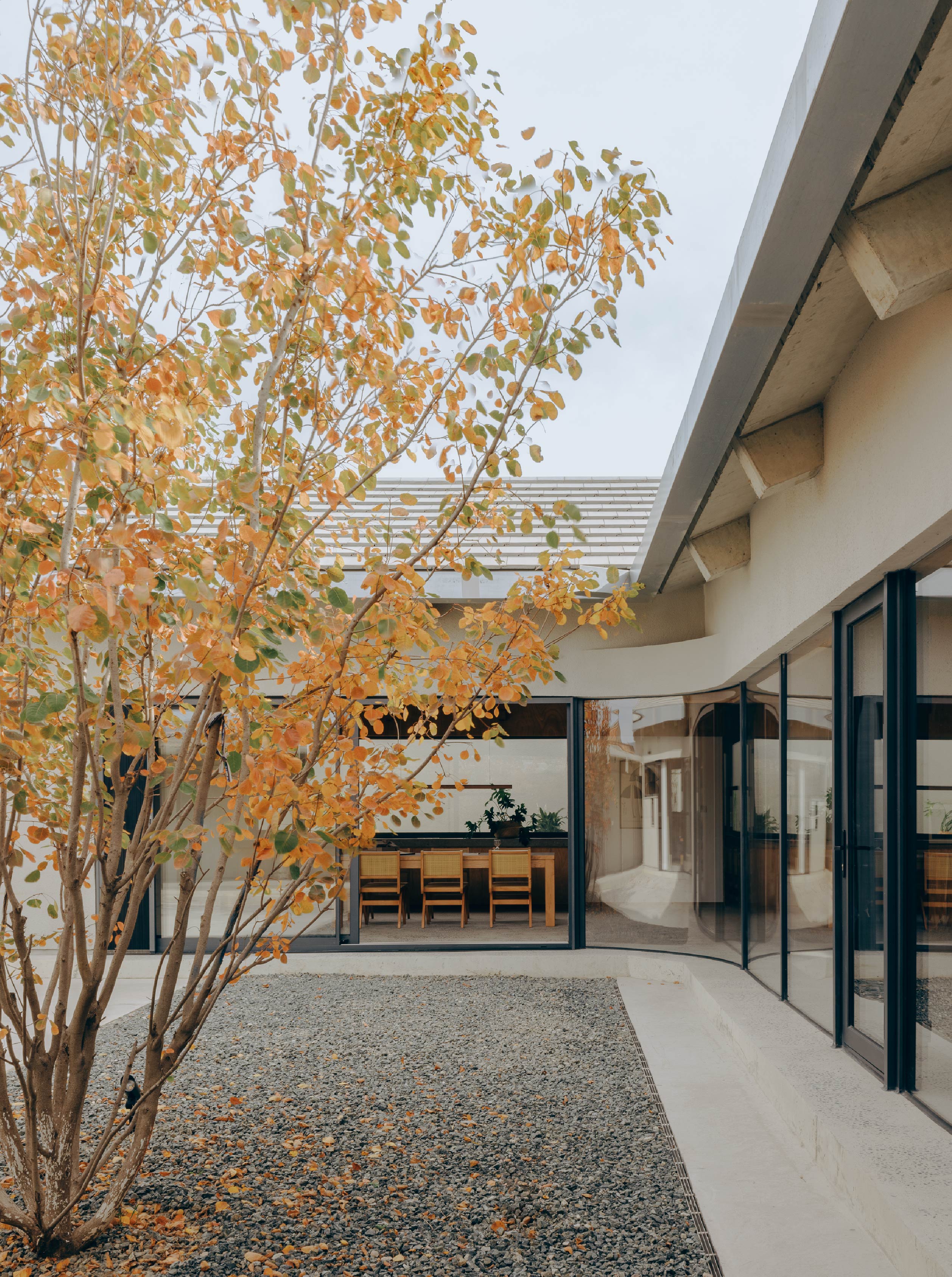 而開敞的前院特意選擇本地黃蘆,在家就能感受季節時序的變化推移;後院種下石榴樹,則承載屋主的童年記憶與情感。