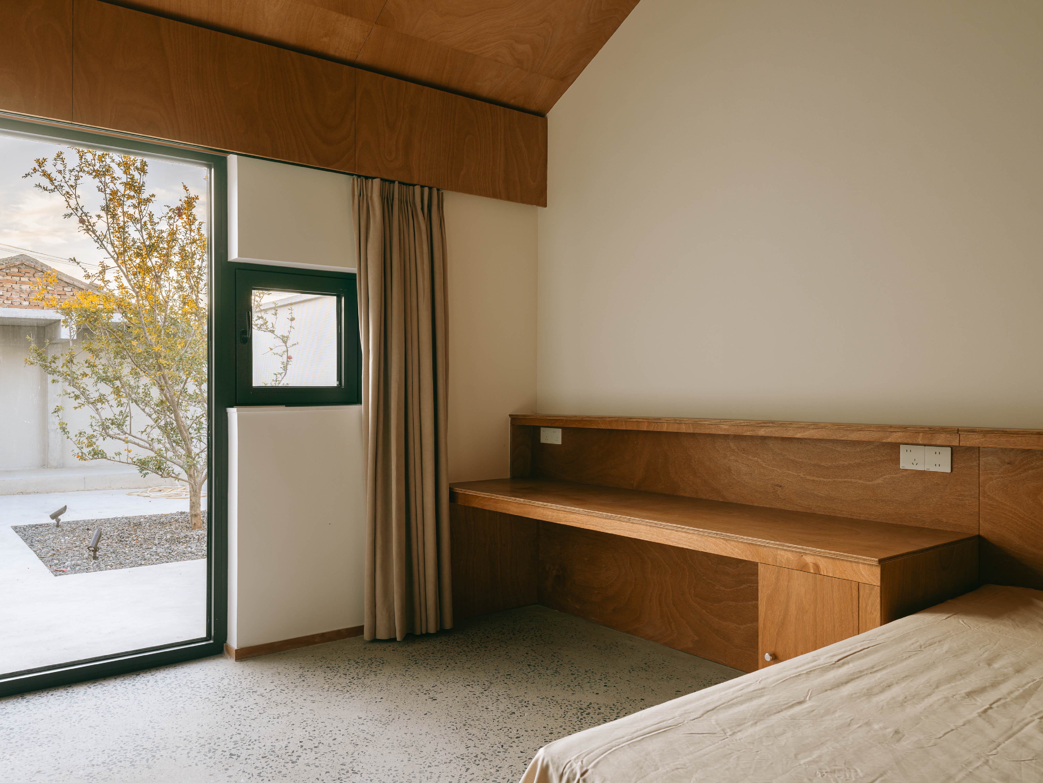 延續貼合生活的思考邏輯,室內地坪抬高70公分,部分院落也抬升地面,與窗戶同高,能避免濕氣與雨水灌入。