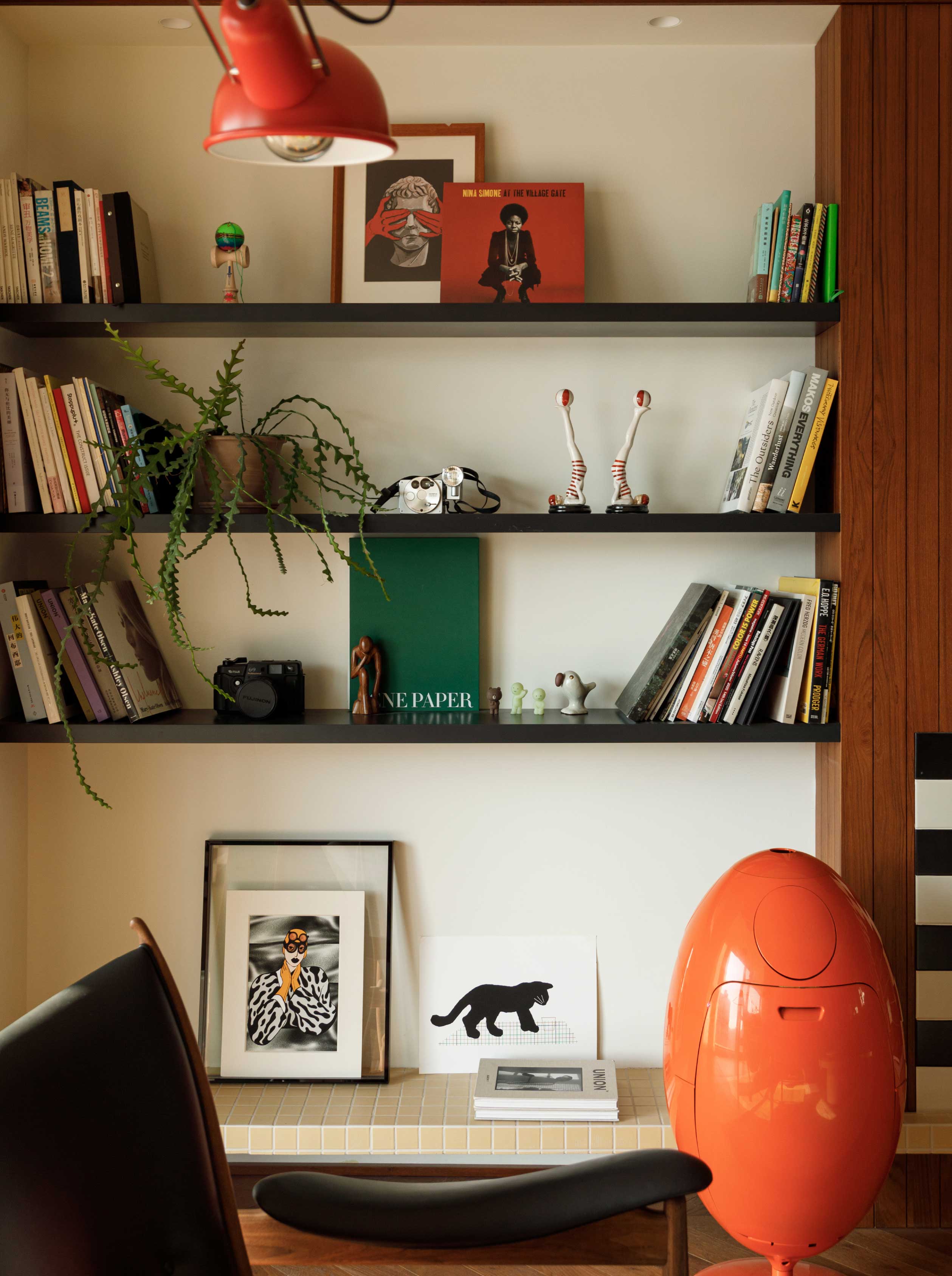 而曼菲斯風格的迷人之處,也能從書房略窺一二。原有的兒童房一分為二,一半改為開放書房,
