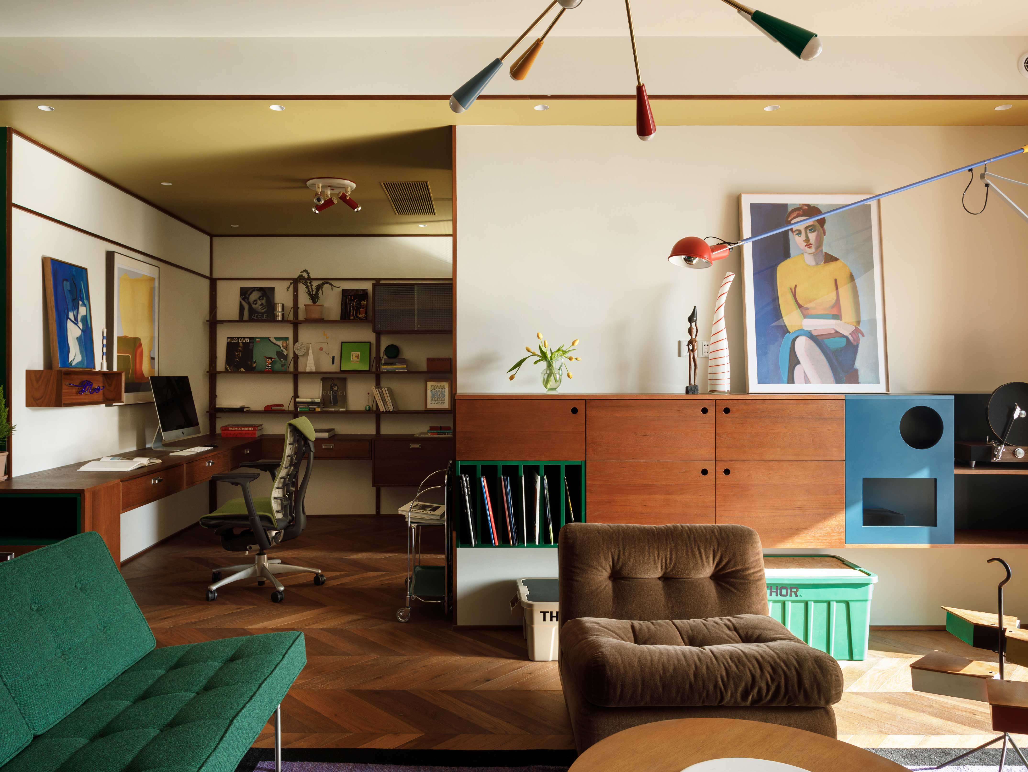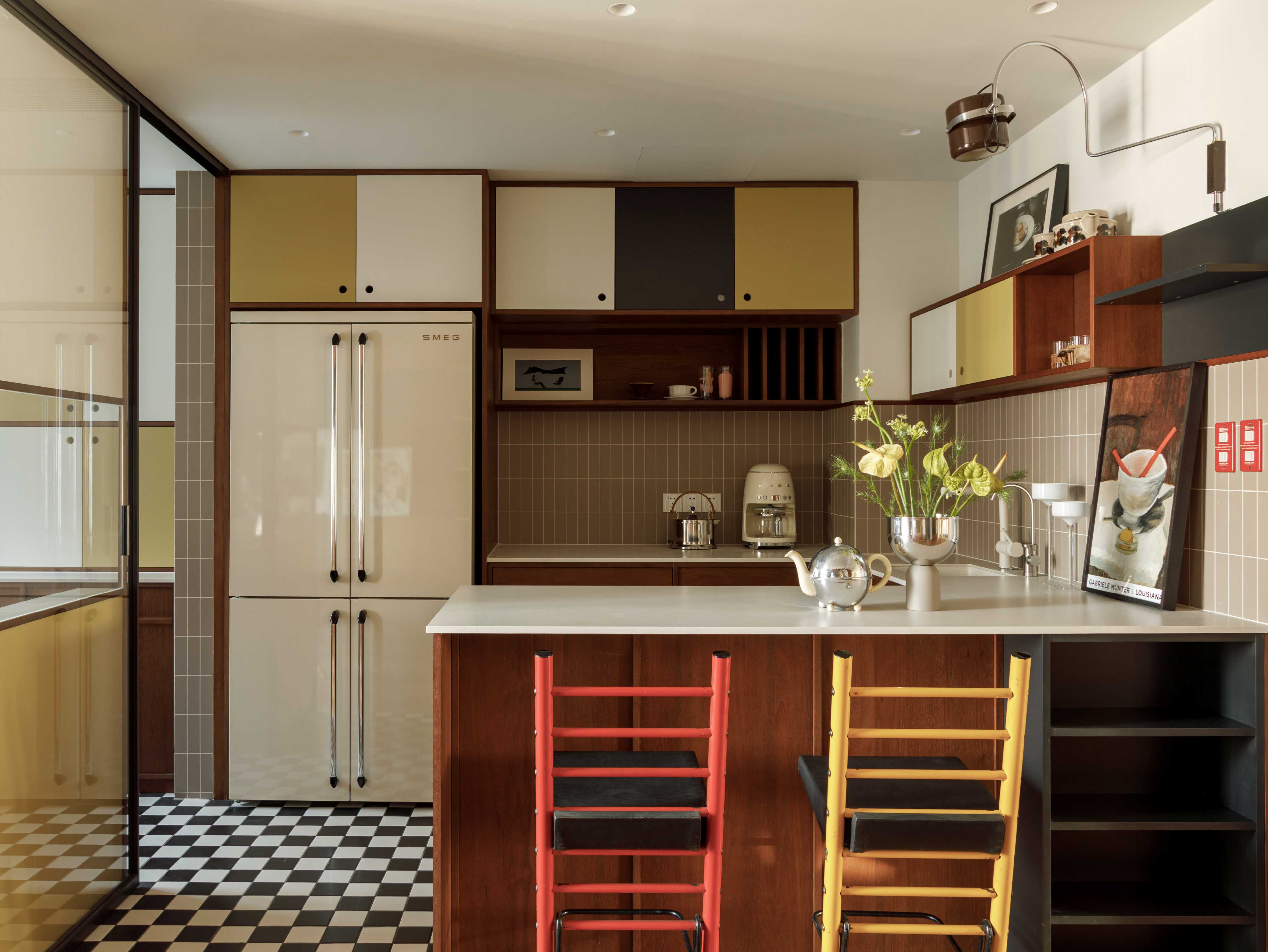 「考量到屋主收藏許多復古家具,空間以世紀中期現代主義(Mid-Century Modern)為框架,納入包浩斯的幾何線條、曼菲斯的鮮豔用色,讓空間有著獨具魅力的韻味。」