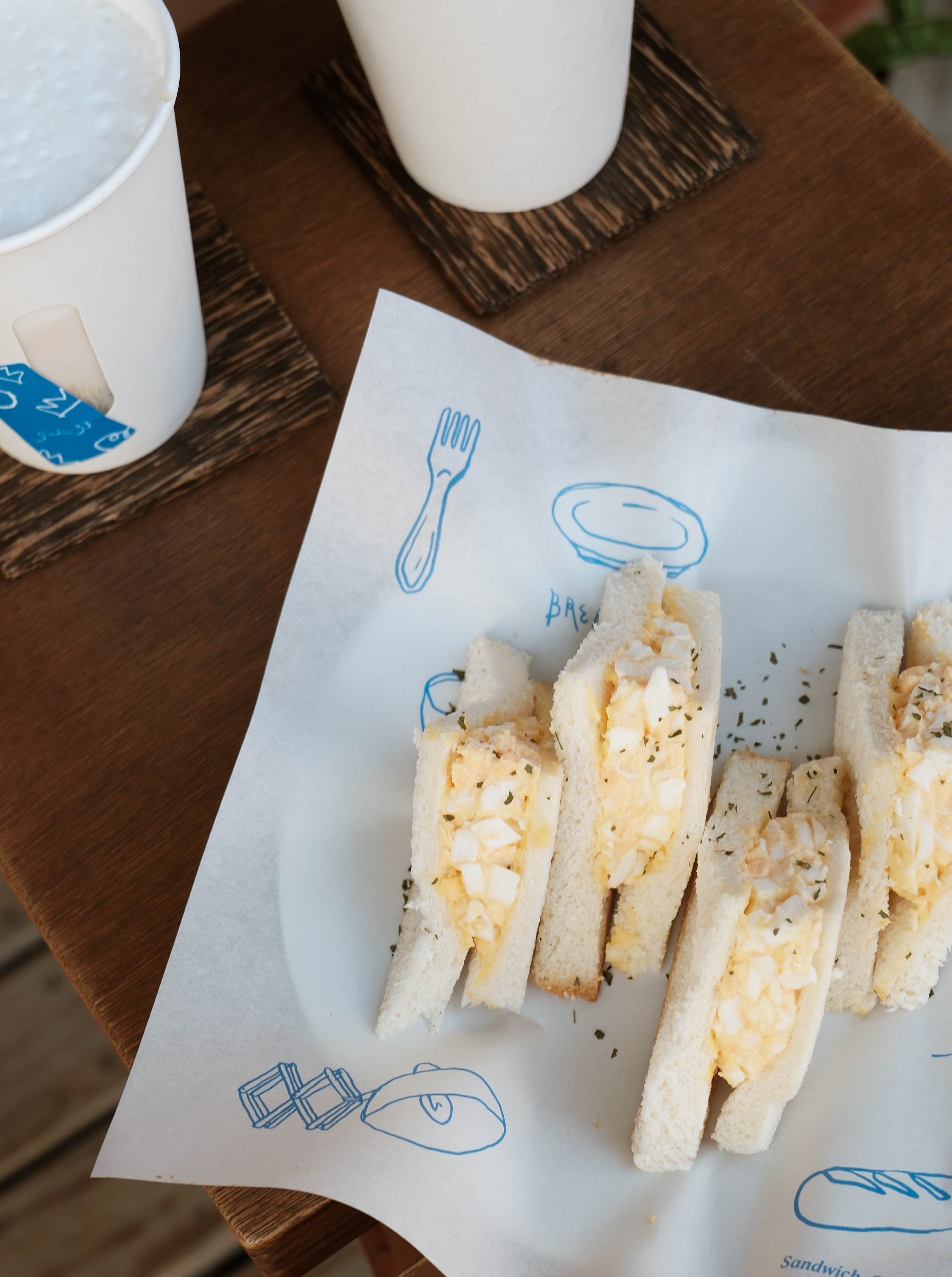 點一份簡單的早餐組合——特調奶茶、沙拉蛋三明治,坐在門口的椅凳上,看著街景緩緩流動,是這間店最日常的畫面。