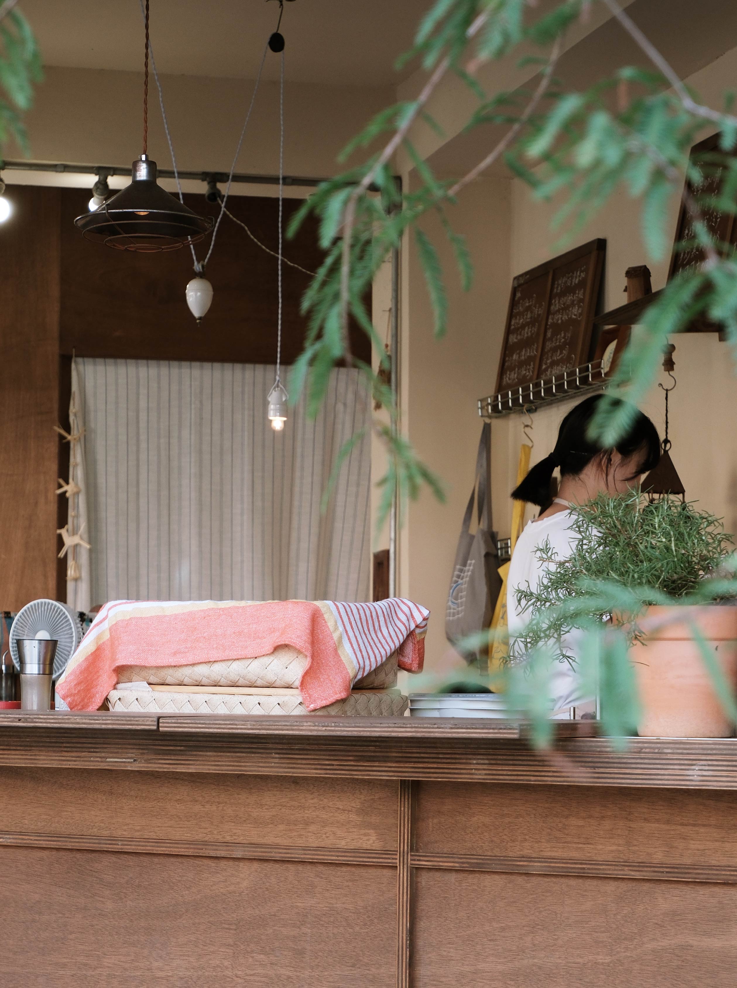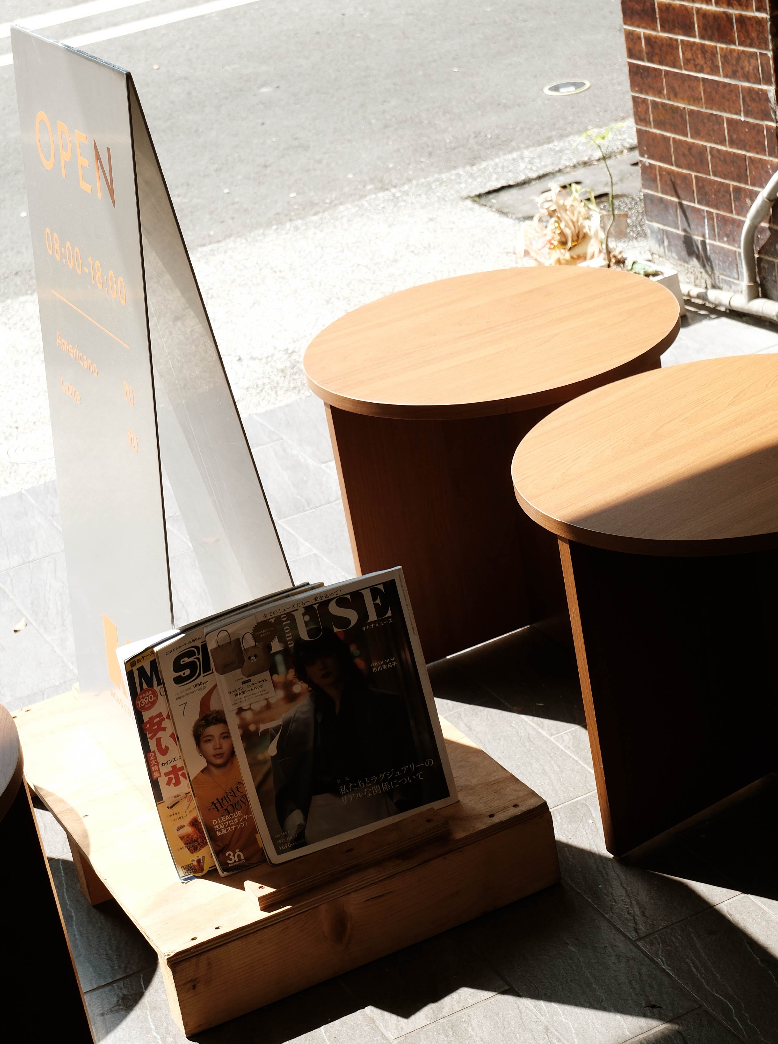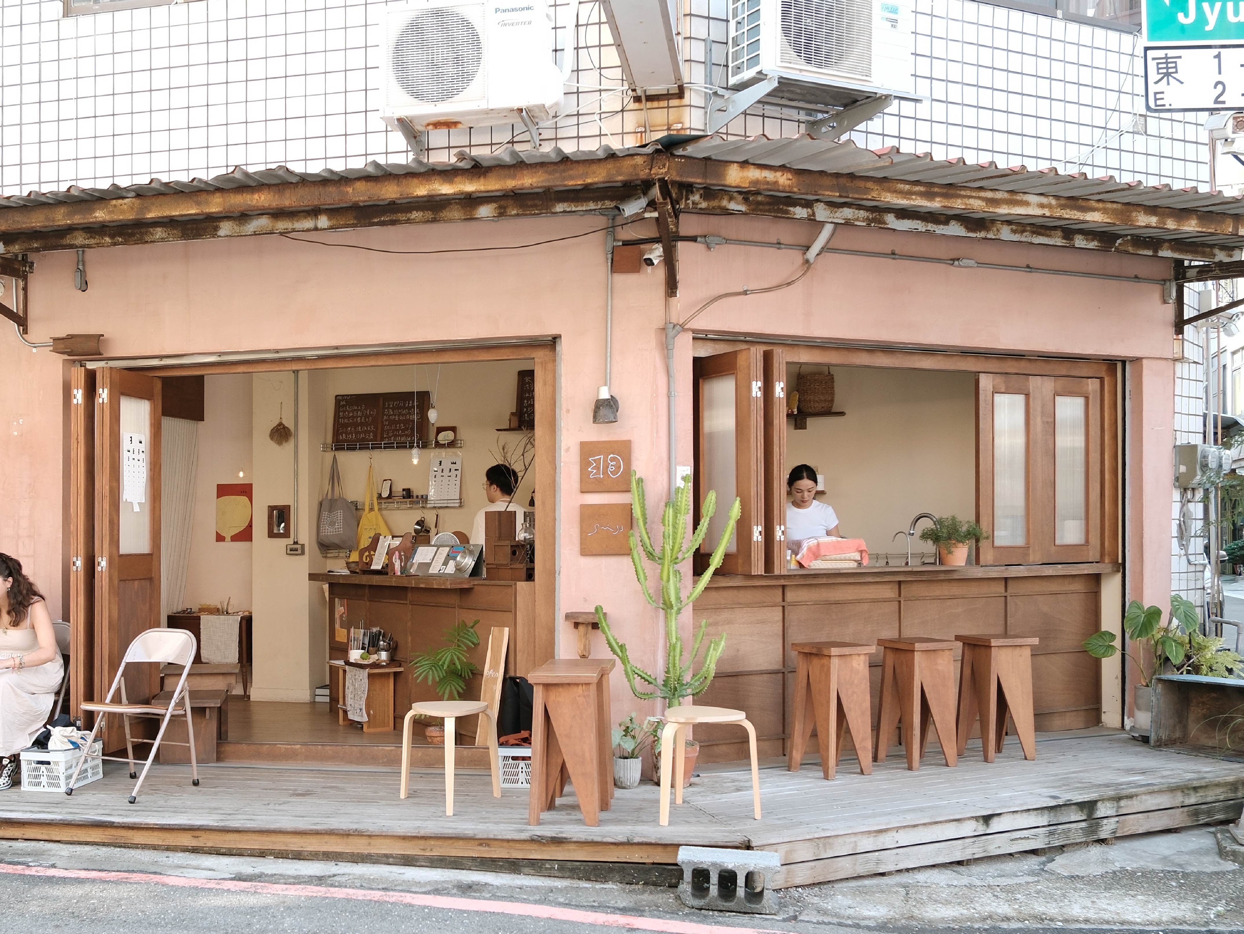 」位在一條寧靜街道,老屋的外牆帶著溫潤的粉橘色調。當木頭摺門全數敞開時,店裡與街道之間幾乎沒有界線,風和光就這樣自然地流入,讓整個空間成為一個開放的半戶外場域。