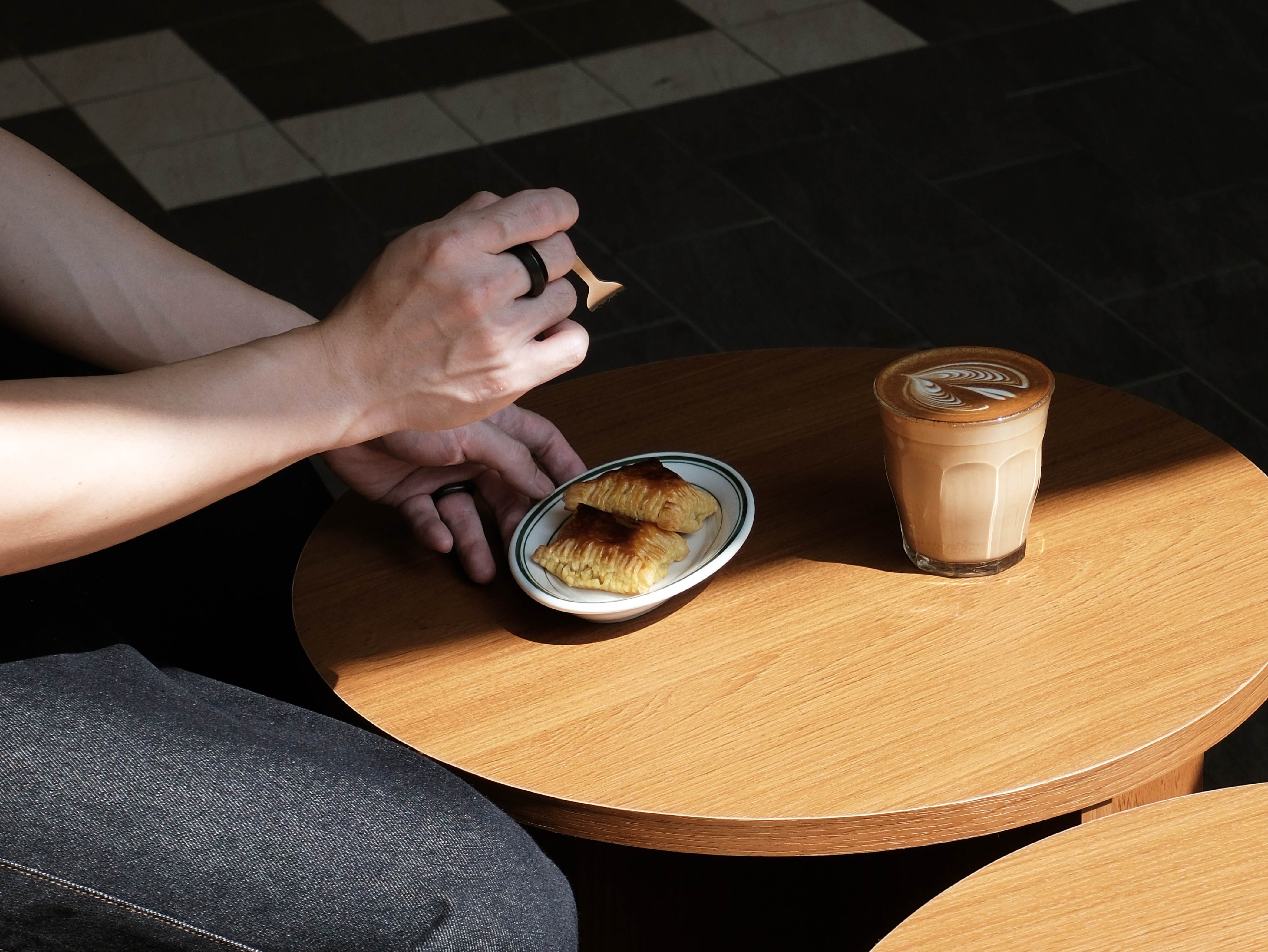 」合作,依照季節推出不同的甜點,當中沒有華麗的裝飾,也不靠濃重的滋味取勝,那是一種單純、乾淨的味道,再搭配上一杯拿鐵或美式,苦與甜在口中交疊成最剛好的平衡。