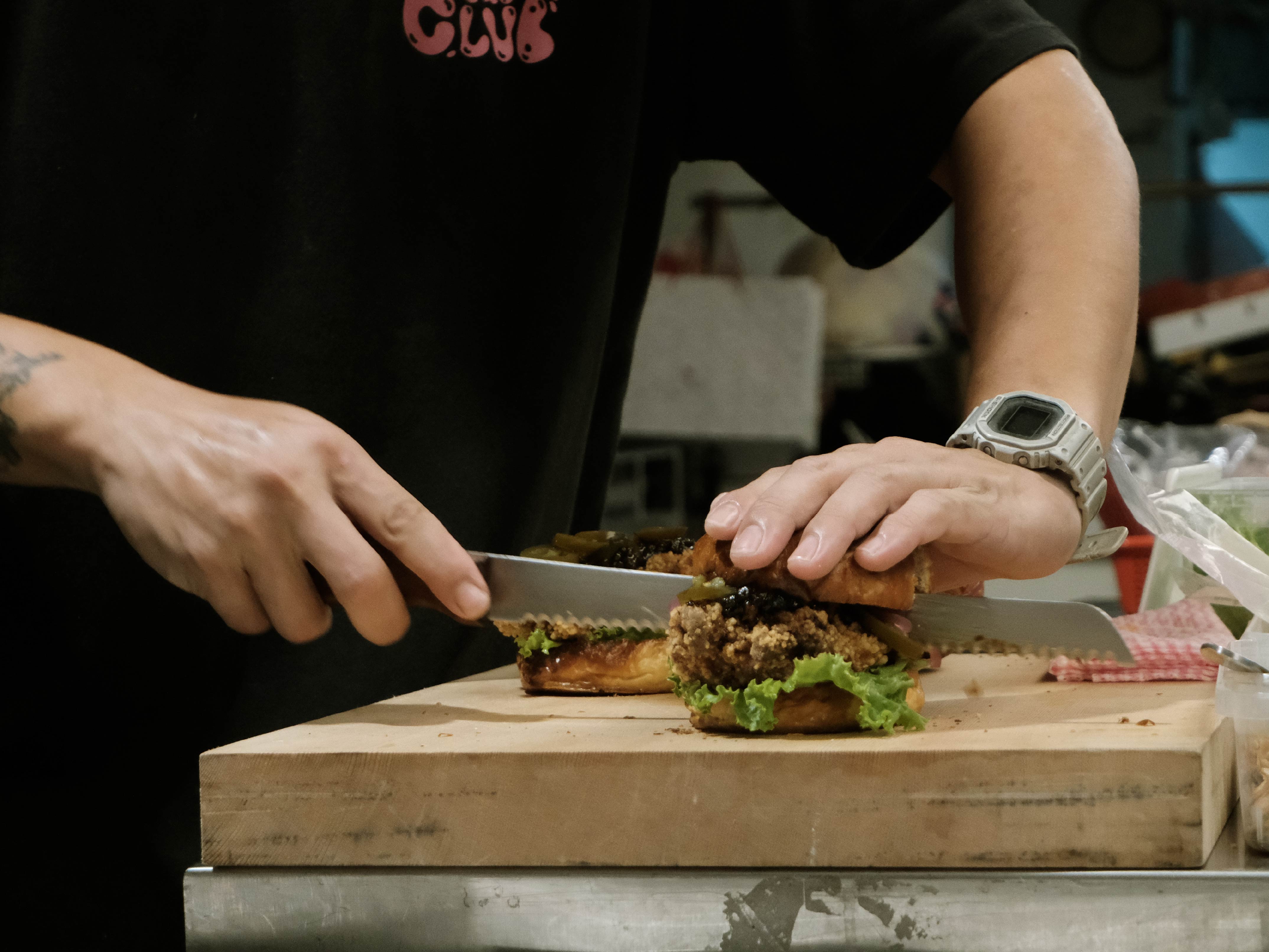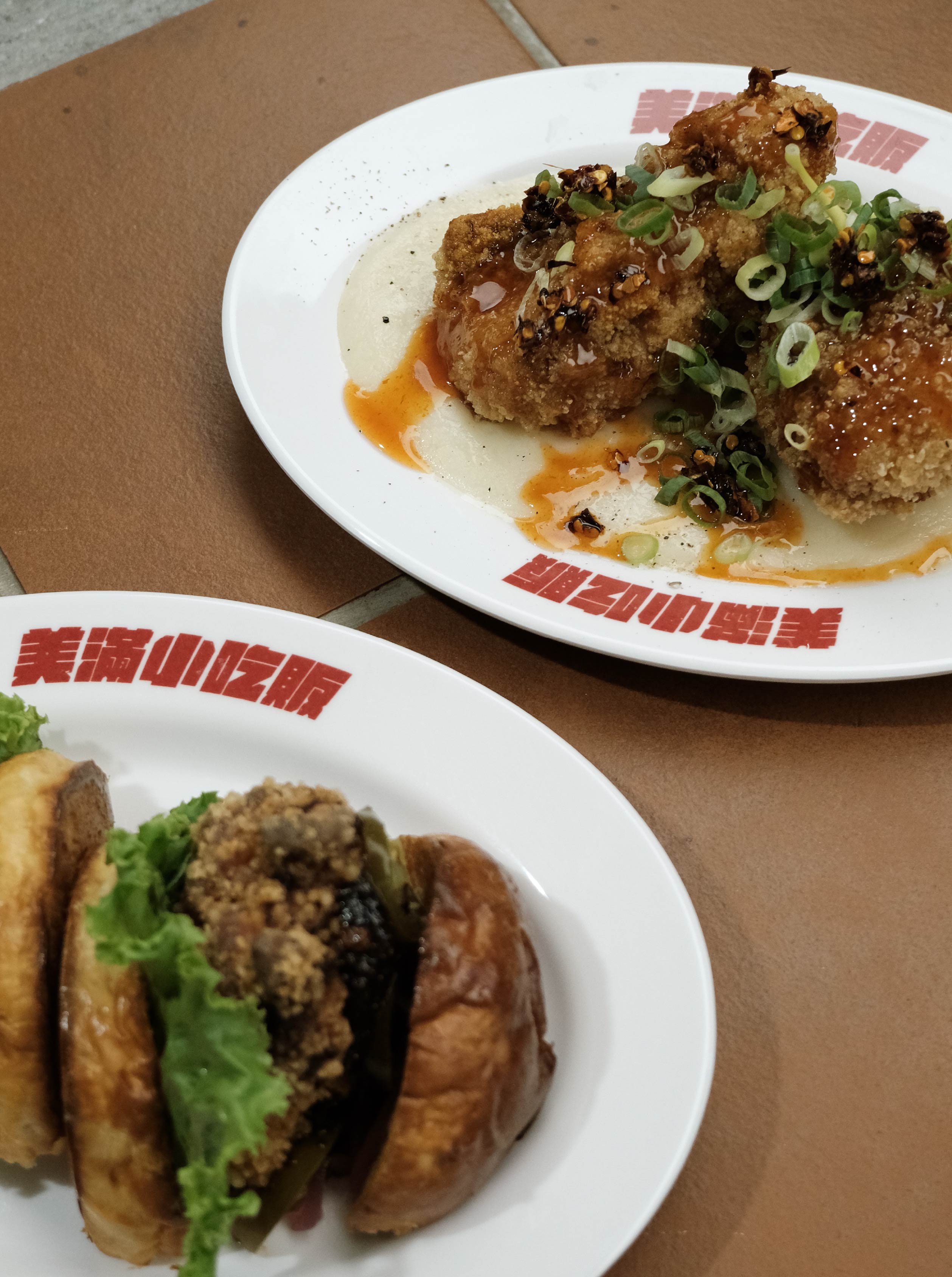 炸雞、漢堡、薯條的組合簡單卻讓人難以抗拒。幾張椅凳沿著吧檯排開,客人們邊吃邊聊,偶爾傳來笑聲。這樣的夜晚沒有特別的安排,卻讓人覺得踏實又滿足。吃完準備離開時,老闆笑著提醒:「我們不一定每天都有開,有時會去跑市集或活動,想來的話記得先看一下社群,不然會撲空哦~」語氣親切得像對老朋友叮嚀,也讓人更期待下次再訪的時刻。