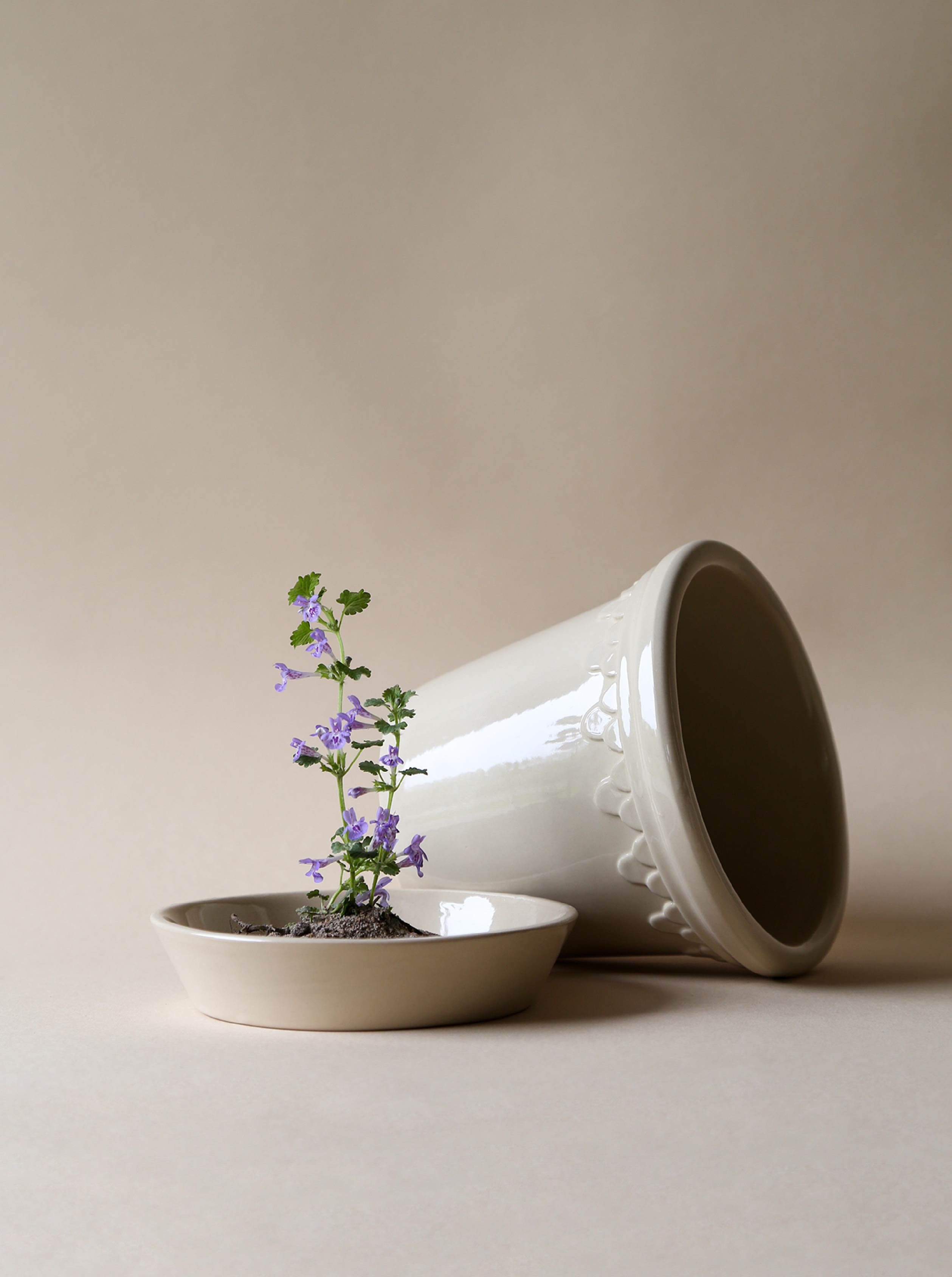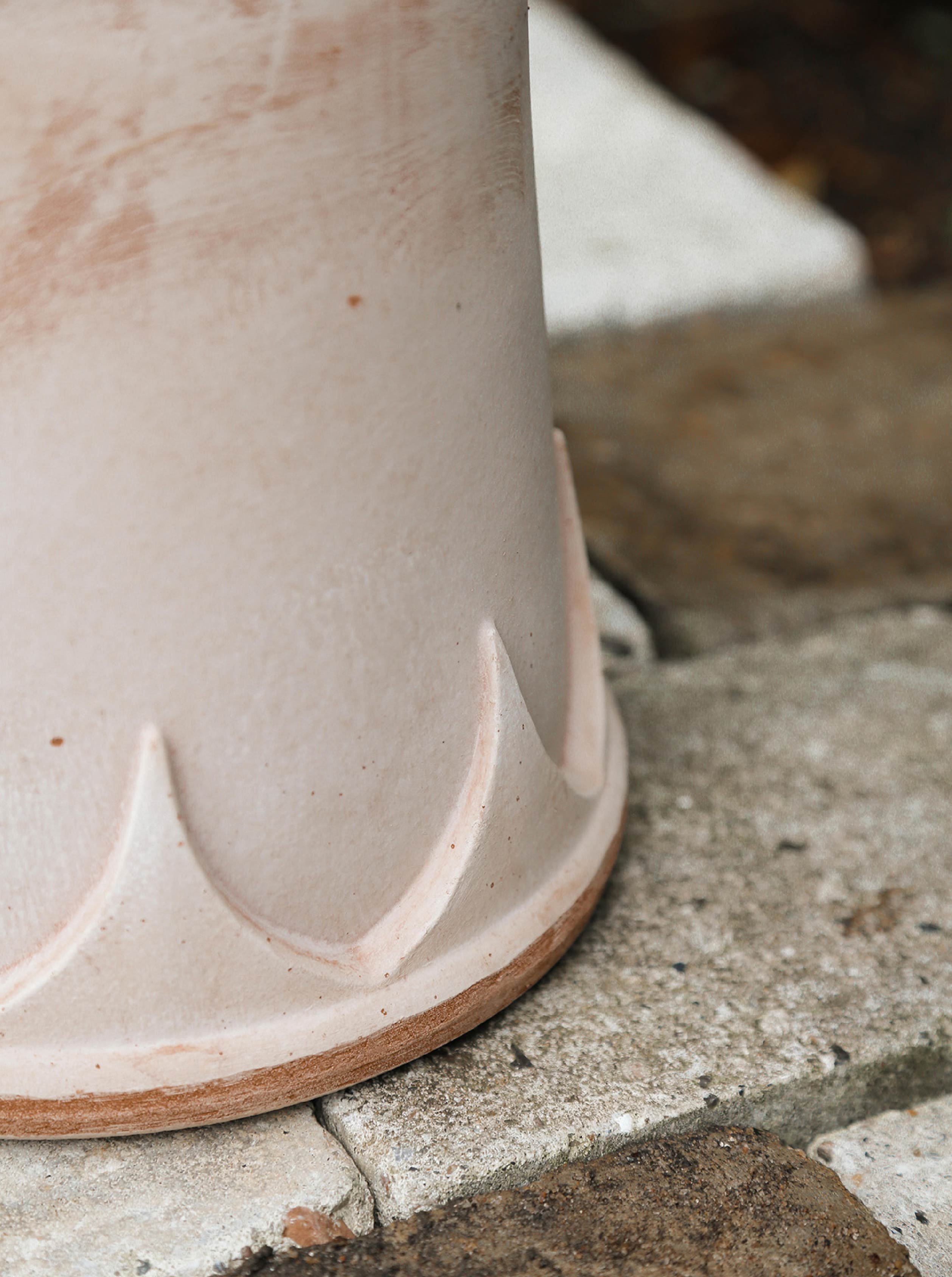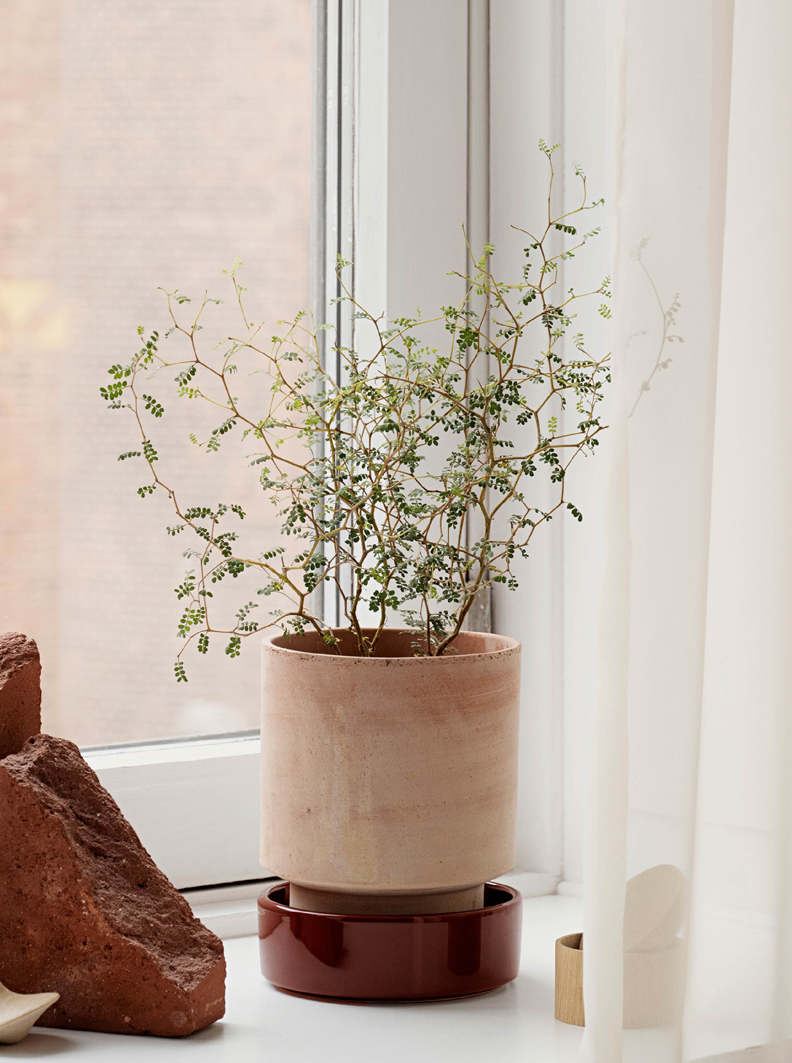 Bergs Potter 在每日與陶盆相處的過程中,漸漸愛上了赤陶材質。從丹麥頻繁拜訪義大利托斯卡尼尋覓心中夢幻陶土,最終選用來自托斯卡尼山丘的 Galestro 頂級黏土。其陶土盆壁多孔隙及高密度的特性,蘊含鐵、鎂與二氧化矽等豐富天然礦物,有助於蒸散多餘水氣和調節濕度,並兼具保水與透氣的恰當平衡。高性能的良好排水能減少根系腐壞,創造茁壯生長的環境,給予植物呼吸空間。