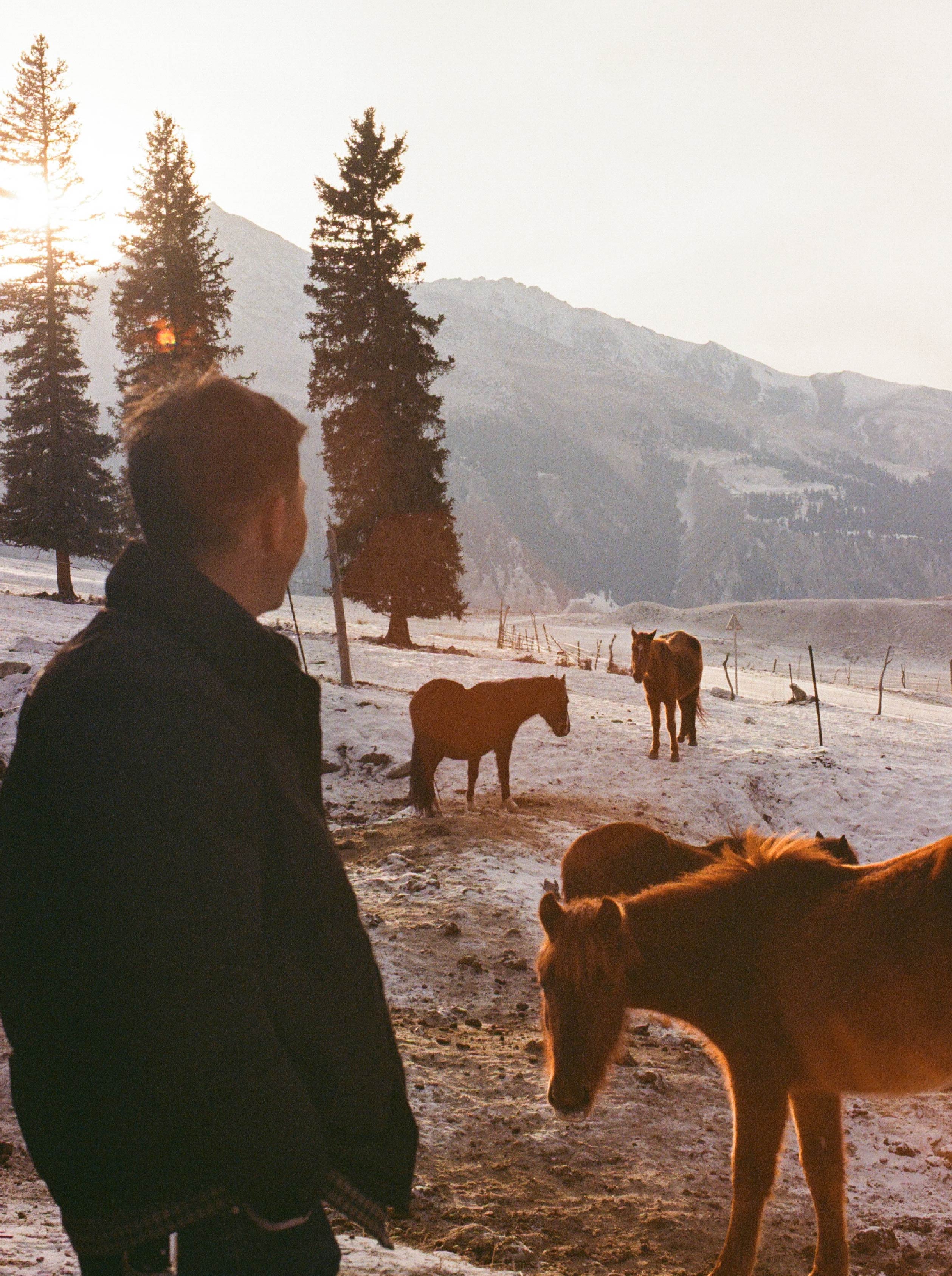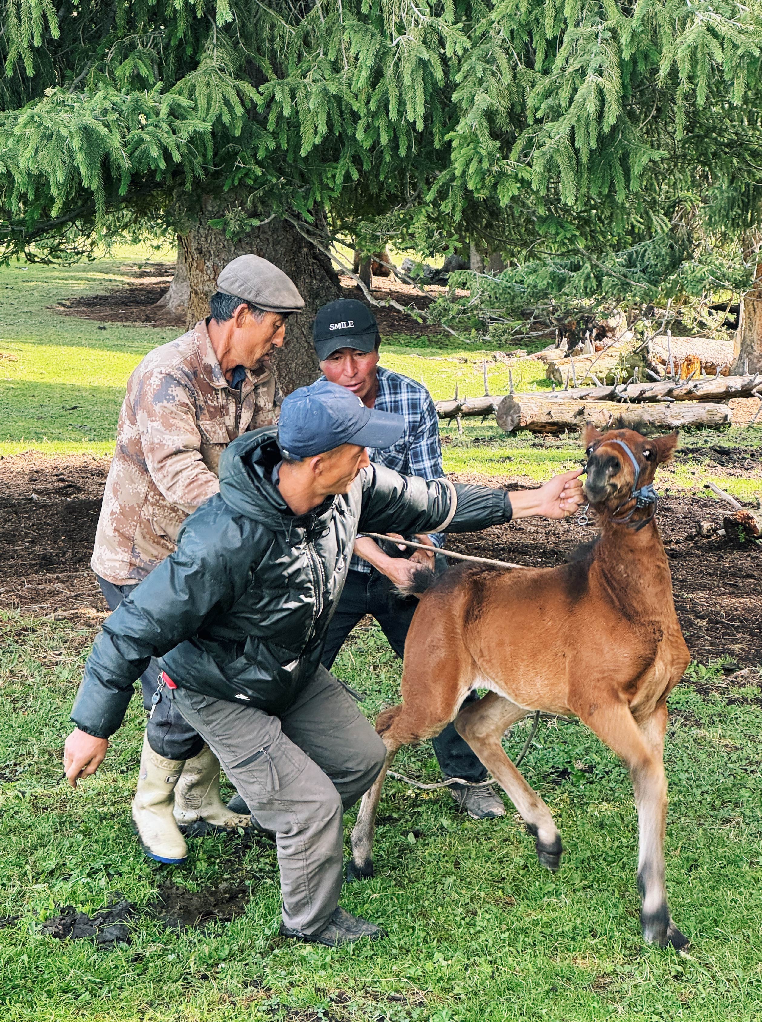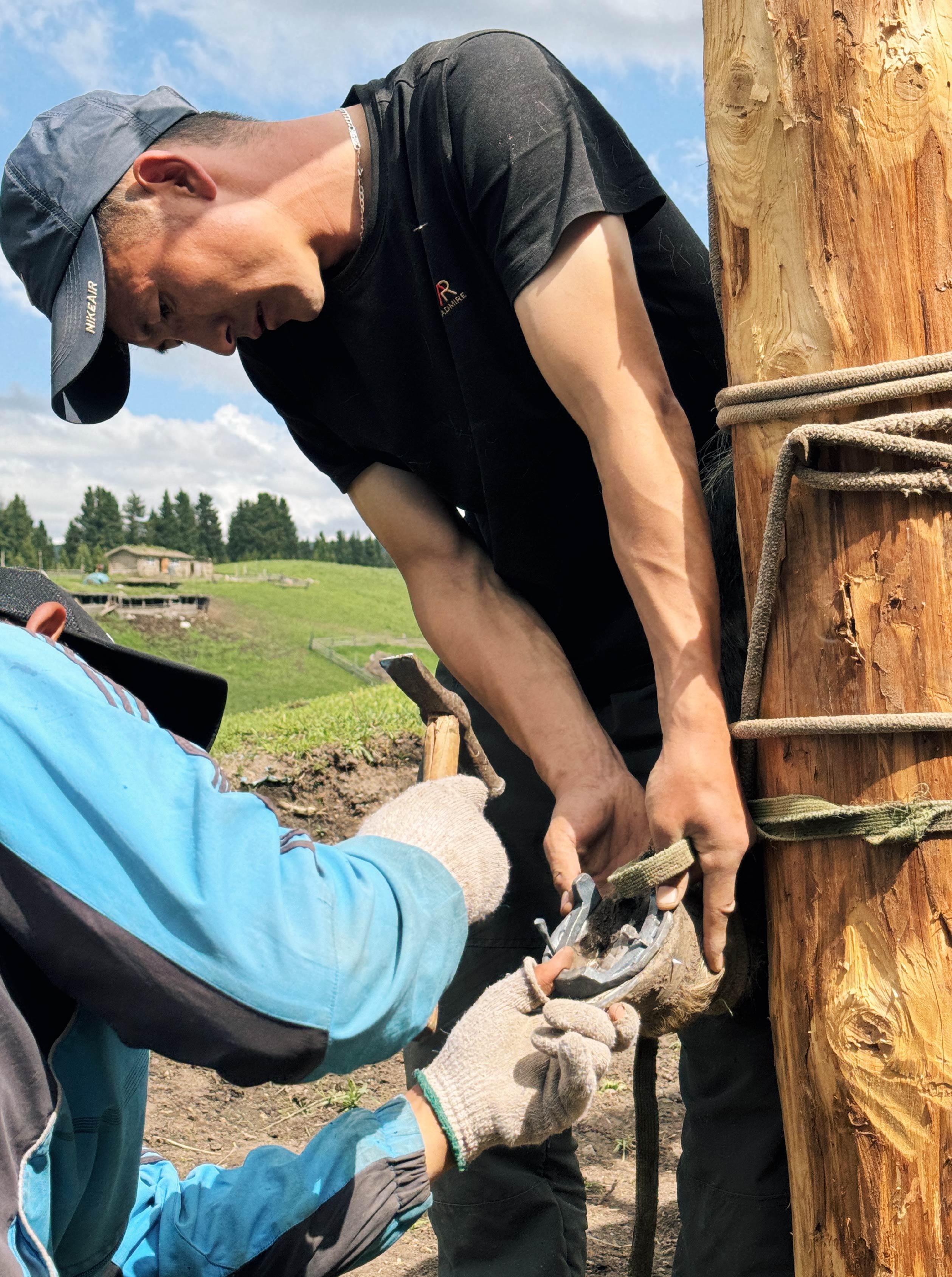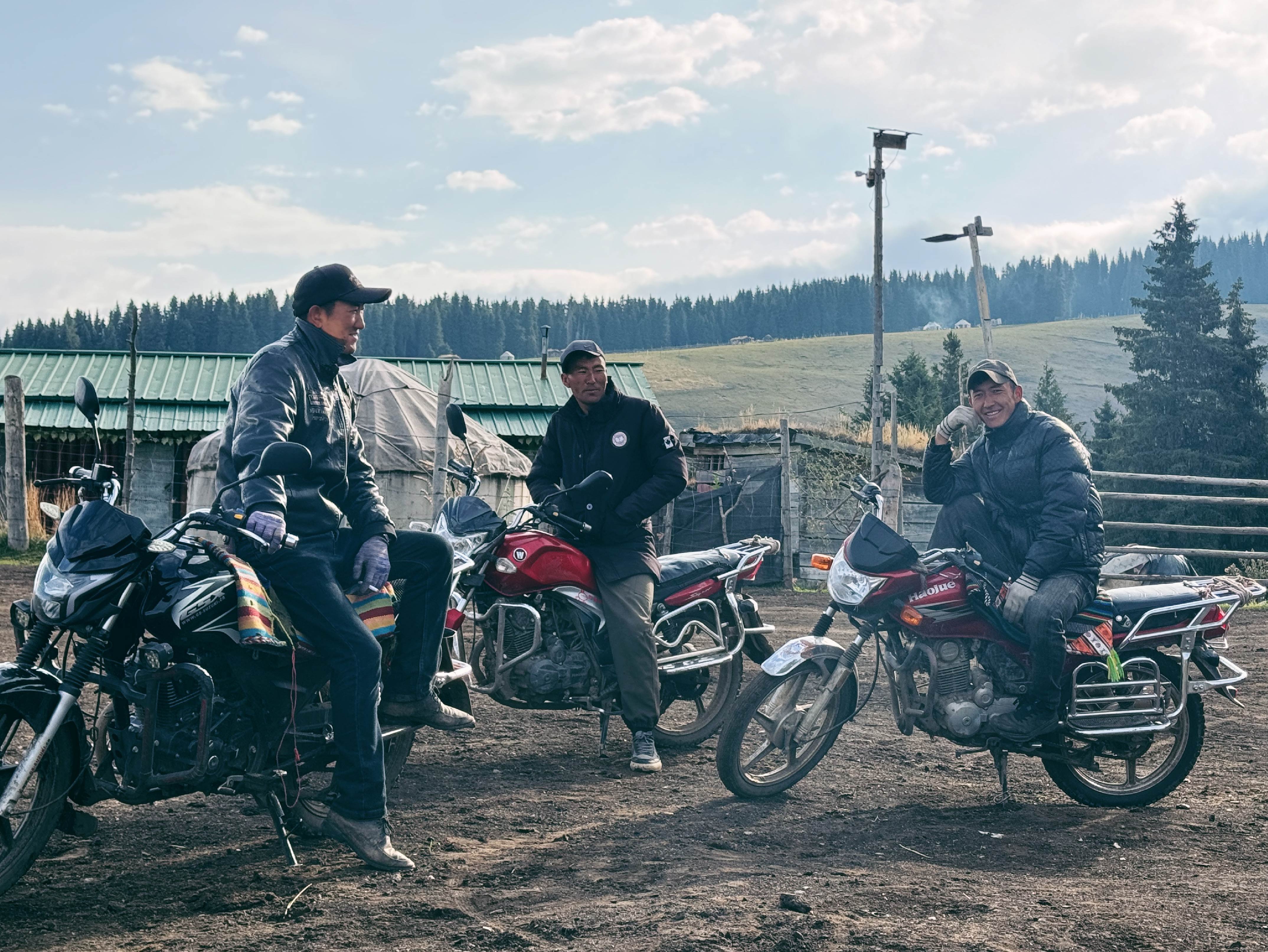 起初只是我用 300 人民幣找來的摩托車司機,負責把我從村子裡帶到偏遠的深山夏牧場。和我以前認識的哈薩克牧民不太一樣,他沒有一見面就問我的名字、問我的年齡、問我結婚了沒,只是默默地把我載到目的地,坐在附近的木頭圍欄上抽著菸,偶爾抬起頭看看我。