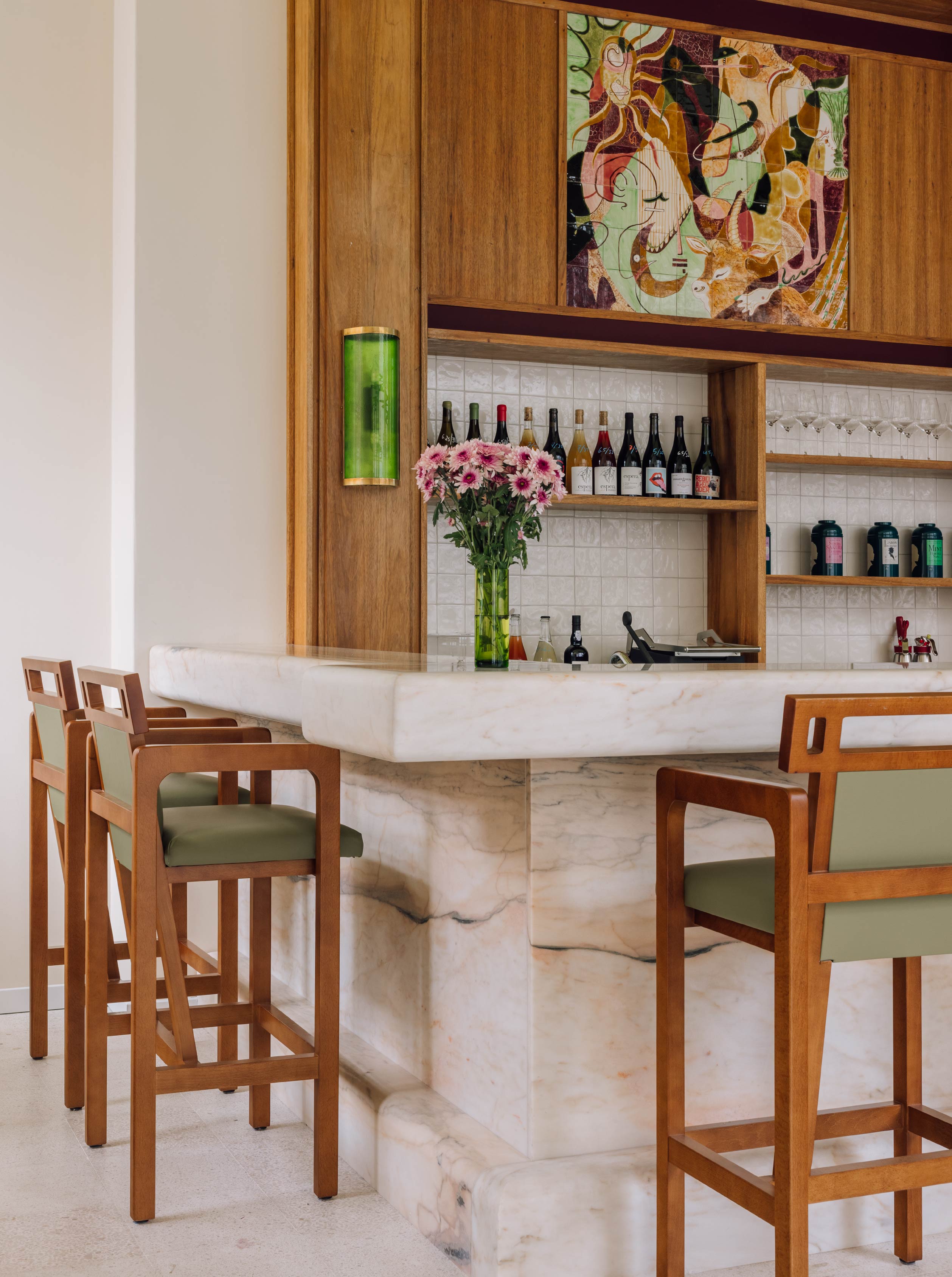 提及Good Company 的設計概念,主理人 Giovanna表示,她和Samuel長期關注葡萄牙設計展現的工藝美感,因此在構思空間時,便以當地經典咖啡館作為重要參考,從比例、材質到細節語彙,逐步形塑出心中理想的樣貌。一方面,他們希望書店空間像是屬於這棟建築的一部分,加上建築本身建於 1960 年代,因此與設計師討論後,大量汲取中世紀現代風格的語彙,並選用在地材料與工匠合作,從大理石吧檯到羊毛纖維吸音天花,每一個細節皆源自葡萄牙,回應這座城市內斂而深厚的工藝傳統。