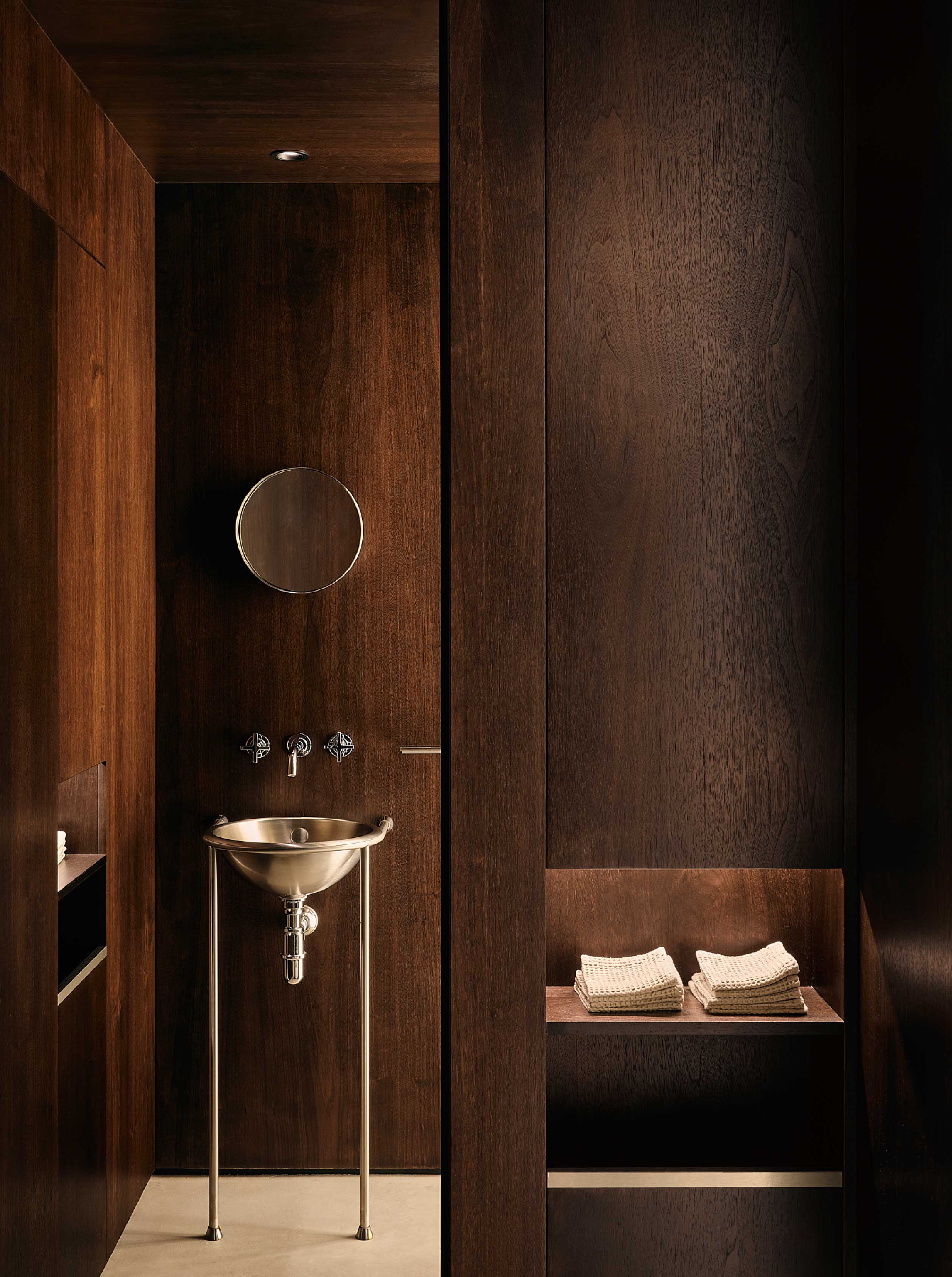 胡桃木穩定重心,圍塑隱密包覆感