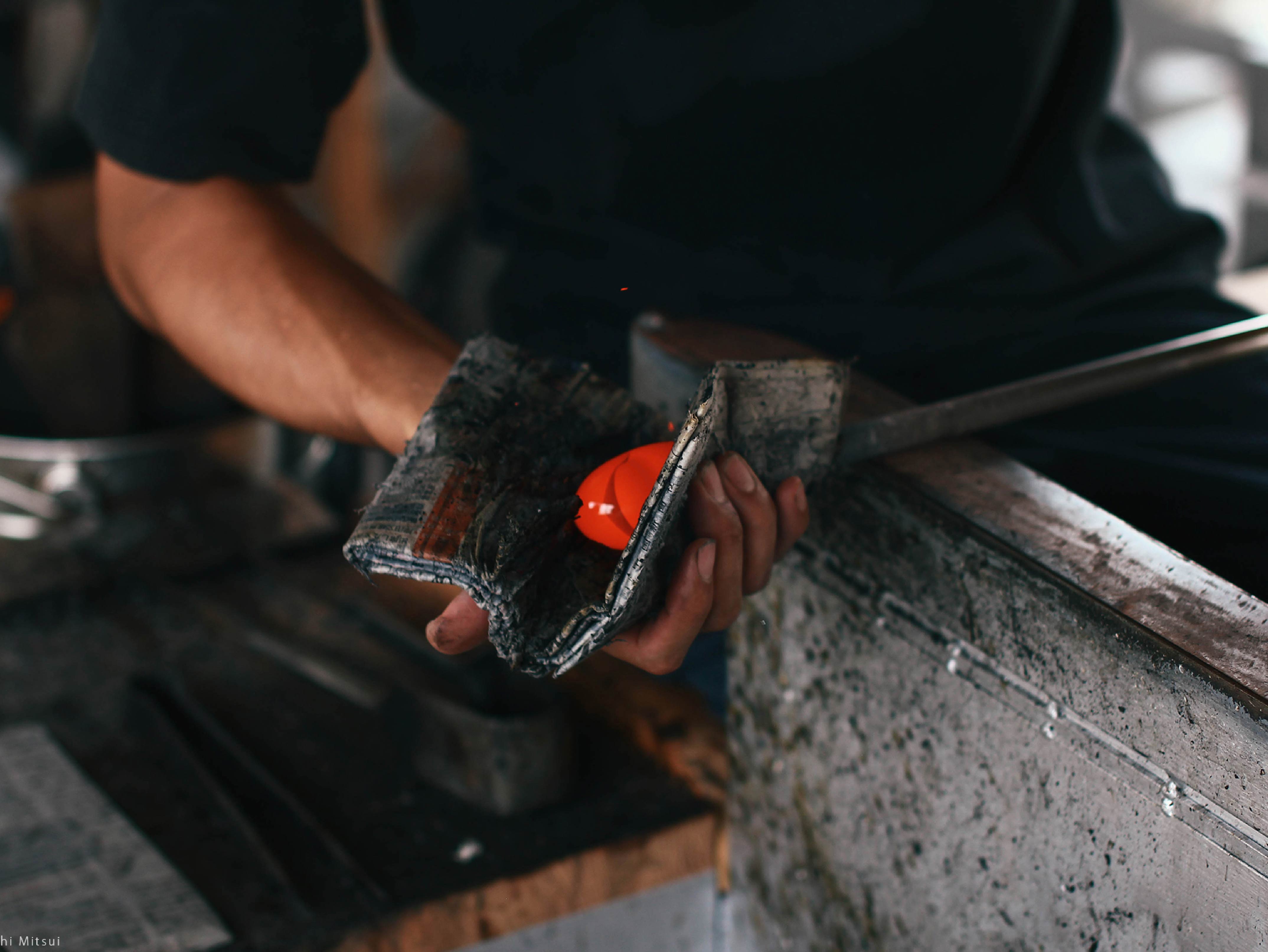 在日本富山鄉間,綠樹與稻田環繞,小路間矗立著一座小小工房,炙熱的窯火滾動著。專注於玻璃製作二十年的藝術家 光井威善 Takeyoshi Mitsui,獨自在窯爐旁吹製玻璃。