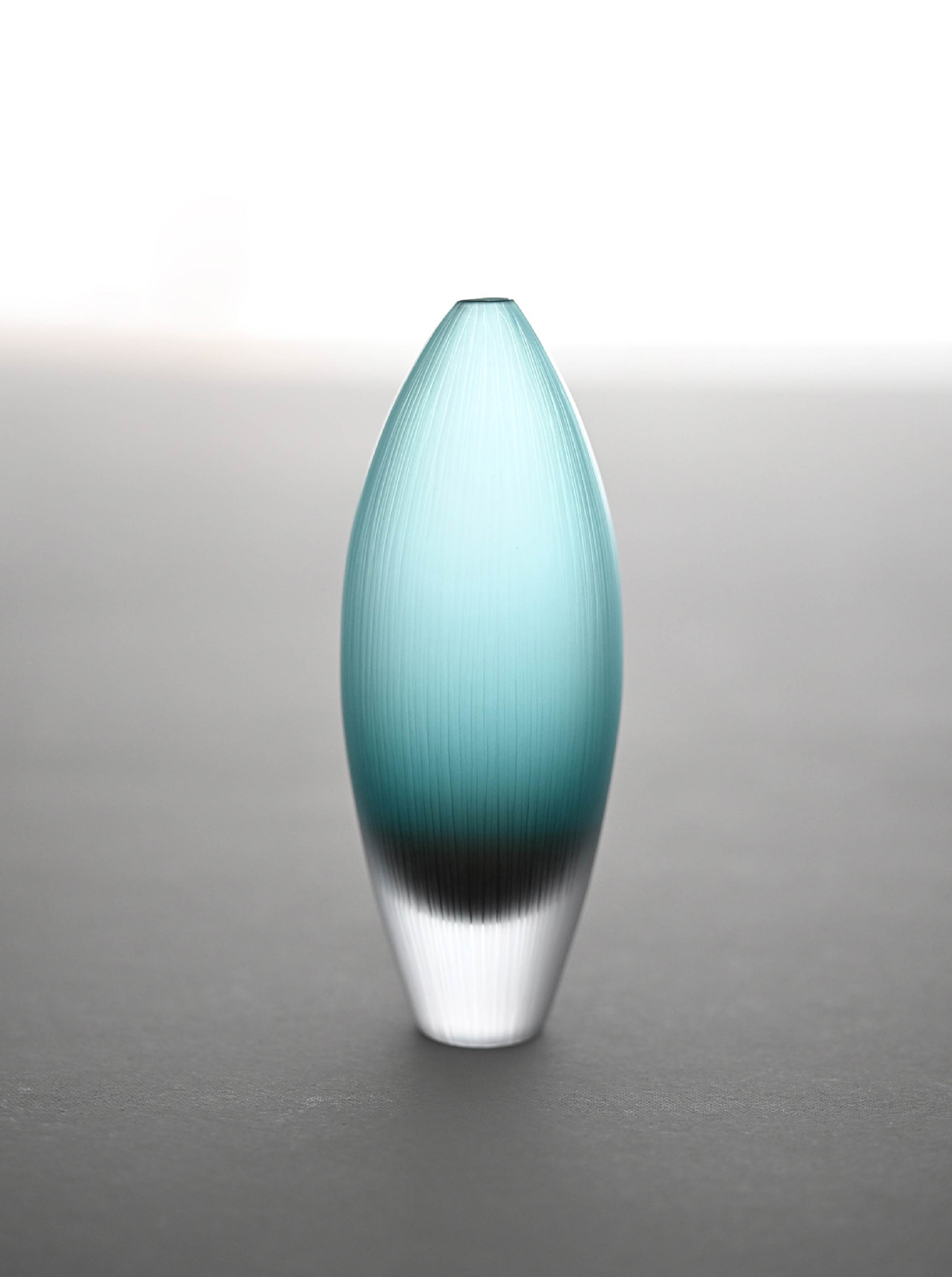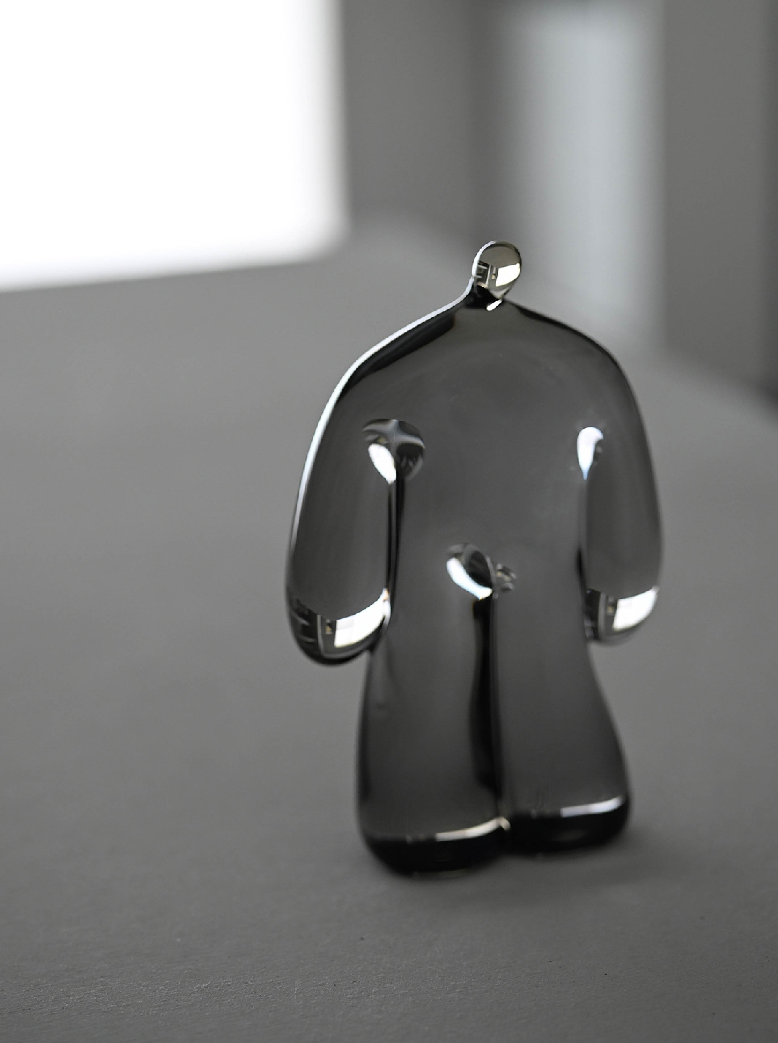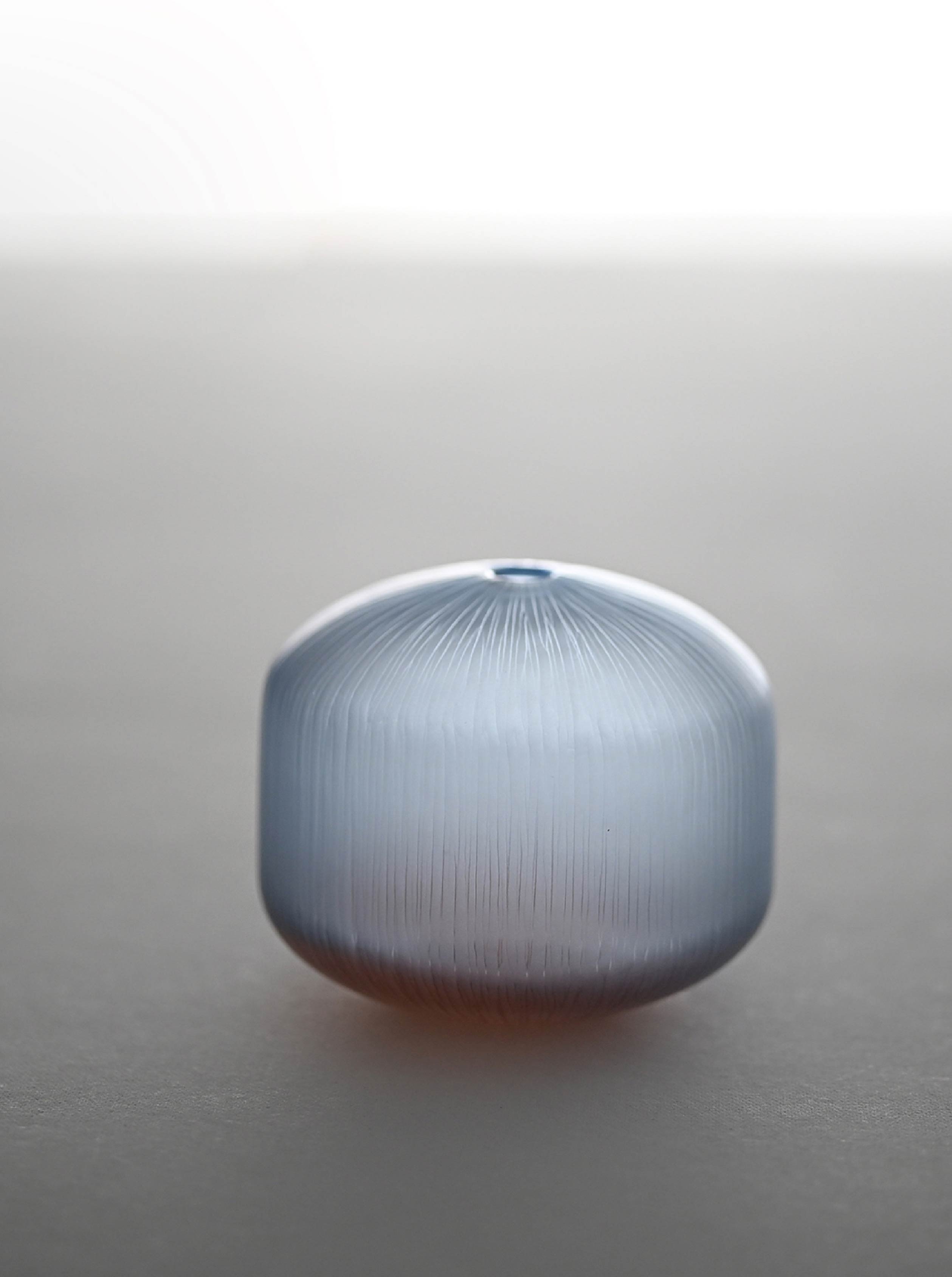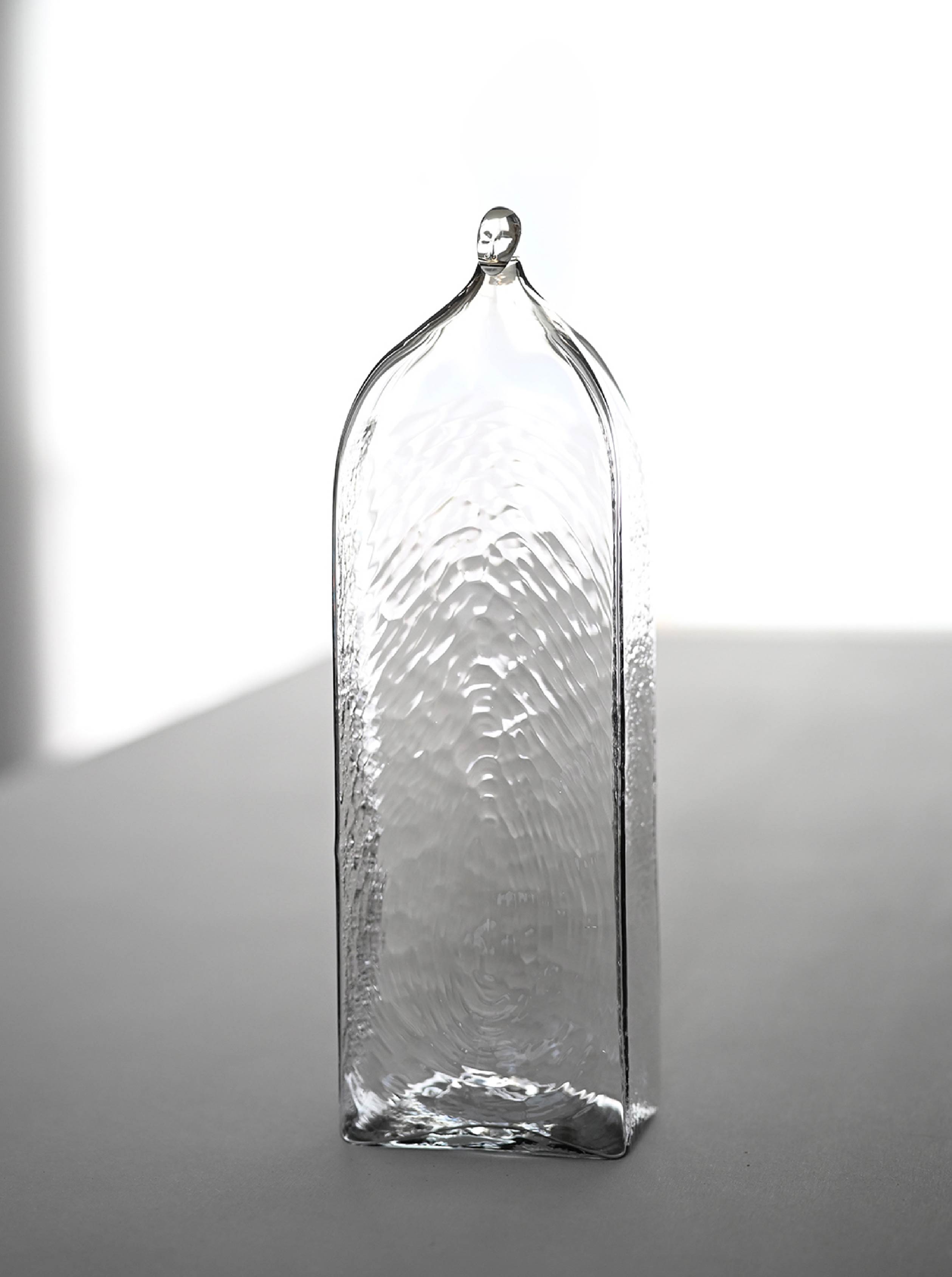 今年,光井威善首次於台灣舉辦個人展覽On Stillness,以口吹玻璃表達靜謐意象為主軸,展出截然不同的經典二系列作品。Silence寂靜系列,靈感源於自身色弱而無法準確辨別真實色彩,但仍渴望運用多種彩度呈現玻璃之美,工藝結合日常實用,將生活中的山巒與海灣風景,紀錄至器物世界裡。Bottle people 瓶人系列,將玻璃瓶變幻成擬人型態,無機材質趣味加入生命力,童年回憶的透明泡泡人物,飄浮在灰度的黑與白之間。