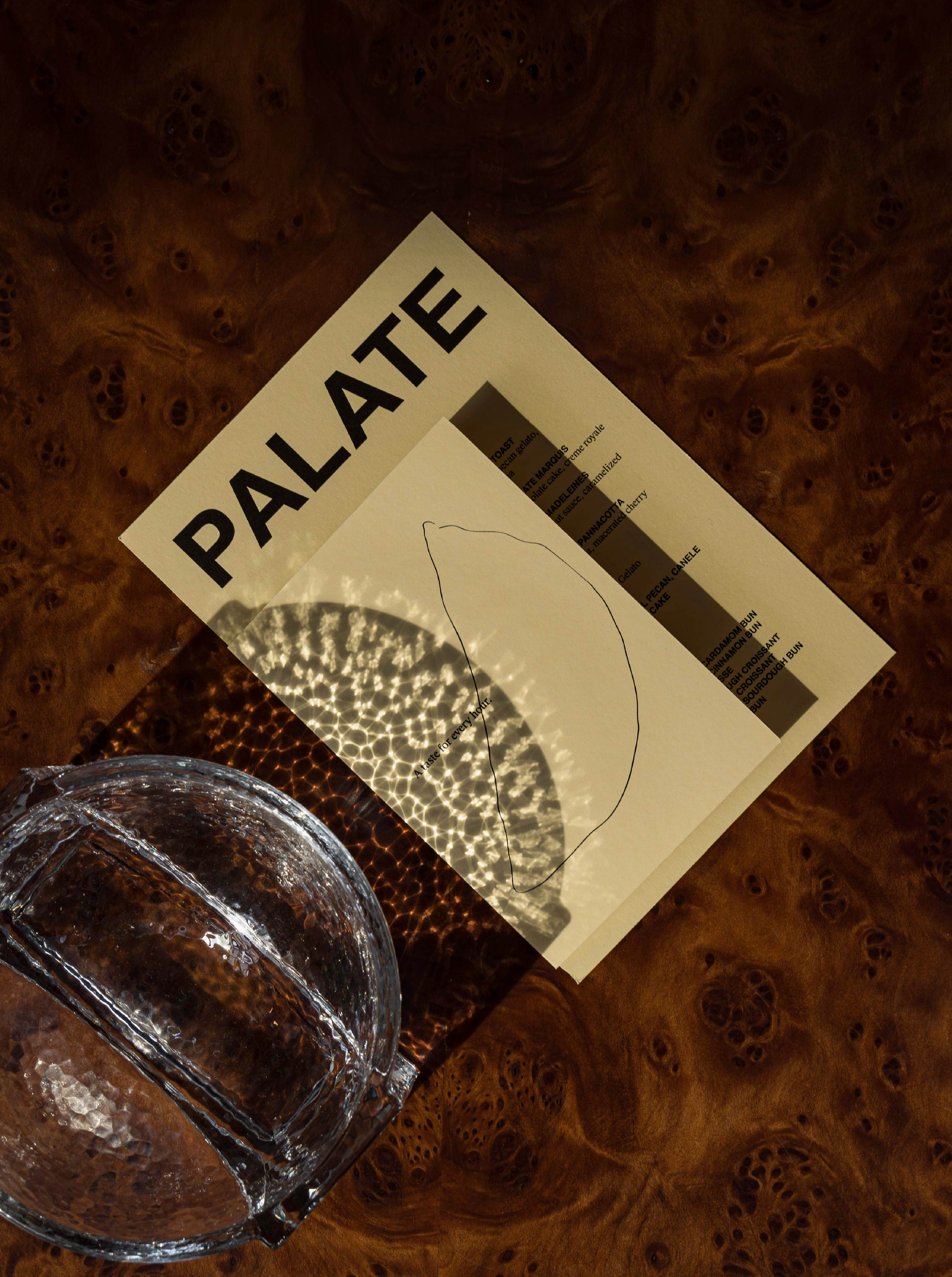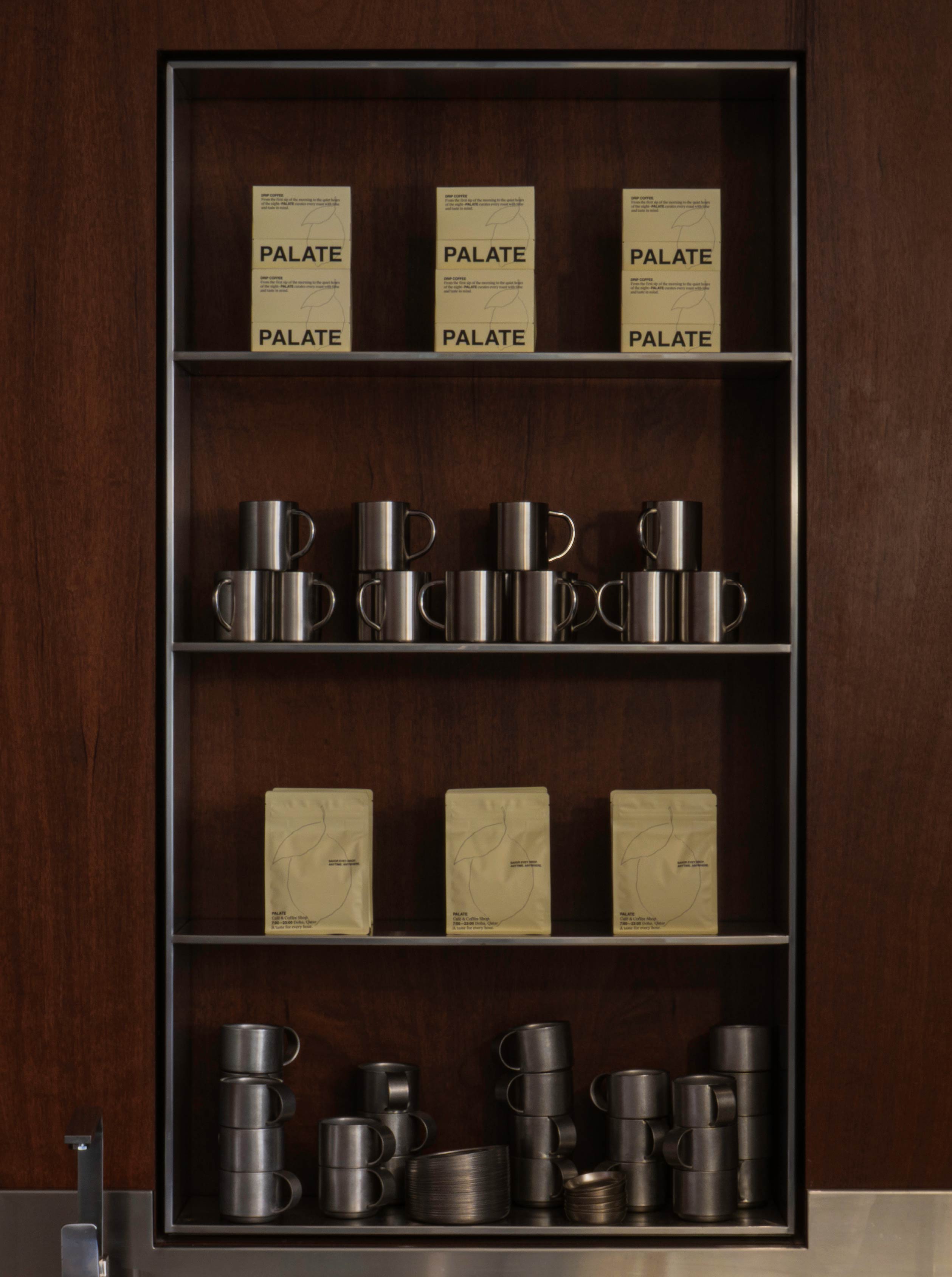 Palate咖啡廳座落於卡達的首都杜哈,在快節奏的城市日常中,提供一處能隨時停下腳步的全天候咖啡場域。品牌識別以「清新味蕾(palate cleansing)」為核心理念,透過檸檬意象與柔和的雪酪黃(sorbet yellow)色彩,傳遞清新、純粹、多樣性的使用想像,回應不同時段與情境的需求。品牌精神延伸至空間,從世紀中現代主義汲取靈感,試圖在理性結構中形塑溫暖放鬆的氛圍。