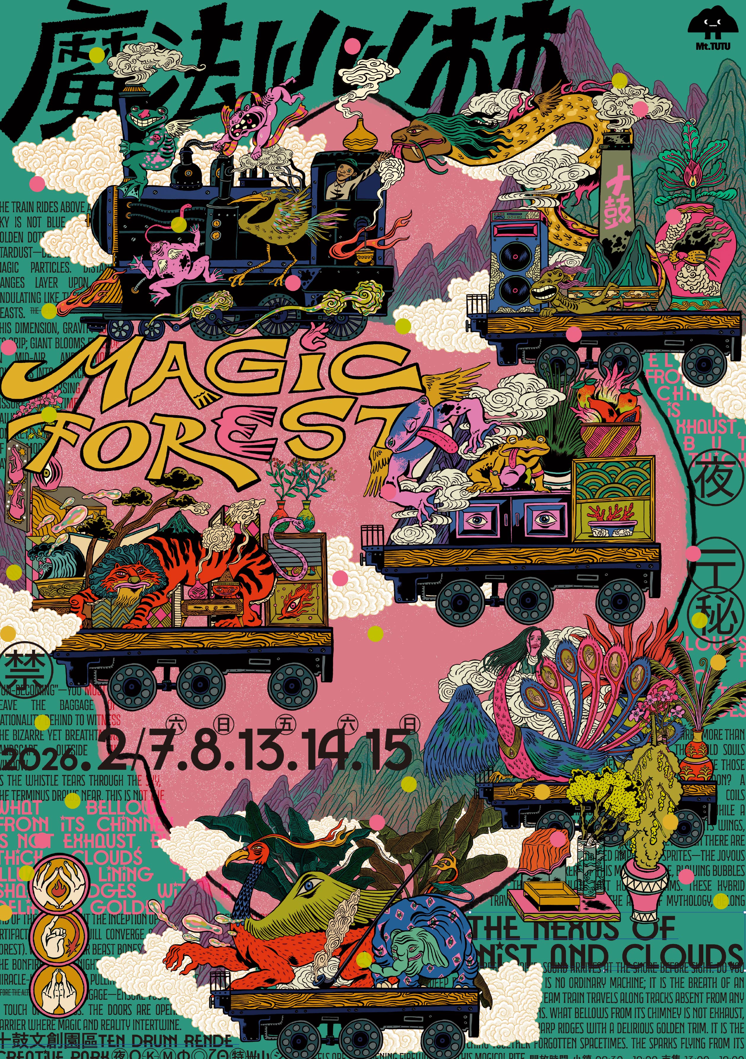 2026 年農曆春節前夕,2/7、8、13、14、15 日連續兩週,由擅長打造夢幻主題的屾屾市與十鼓文創園區聯手打造第四屆「魔法屾林博覽會」大型主題活動,首度結合東方魔法及西方神秘學,以《山海經》為發想跨越東西方,將擁有 118 年歷史的仁德車路墘製糖廠,這座曾入圍「世界建築獎」的工業遺產,透過魔法、藝術、建築、歷史與震撼的擊鼓表演,重塑為一處充滿魔幻氛圍的時尚探險聖地。