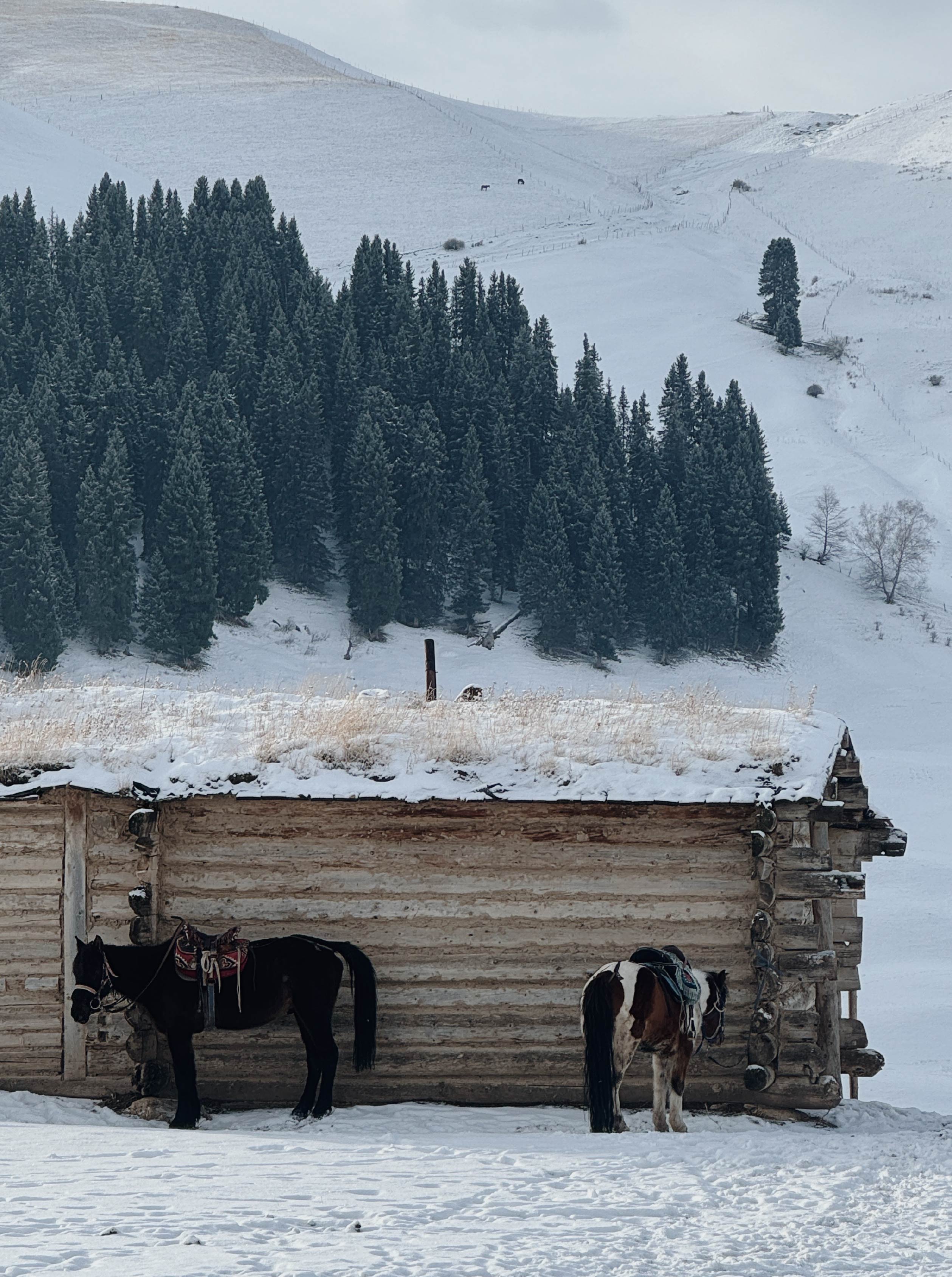 那天我坐在馬背上超過8小時,除了上廁所中間沒有下馬休息過。騎上喀拉峻草原遇到刺骨的暴風雪、放晴以後森林裡的光影、馬兒走在柏油路上的噠噠聲⋯⋯把馬群趕進山下家的院子以後,我連下馬都覺得困難,屁股和大腿的疼痛讓我走起路來像隻大青蛙。
