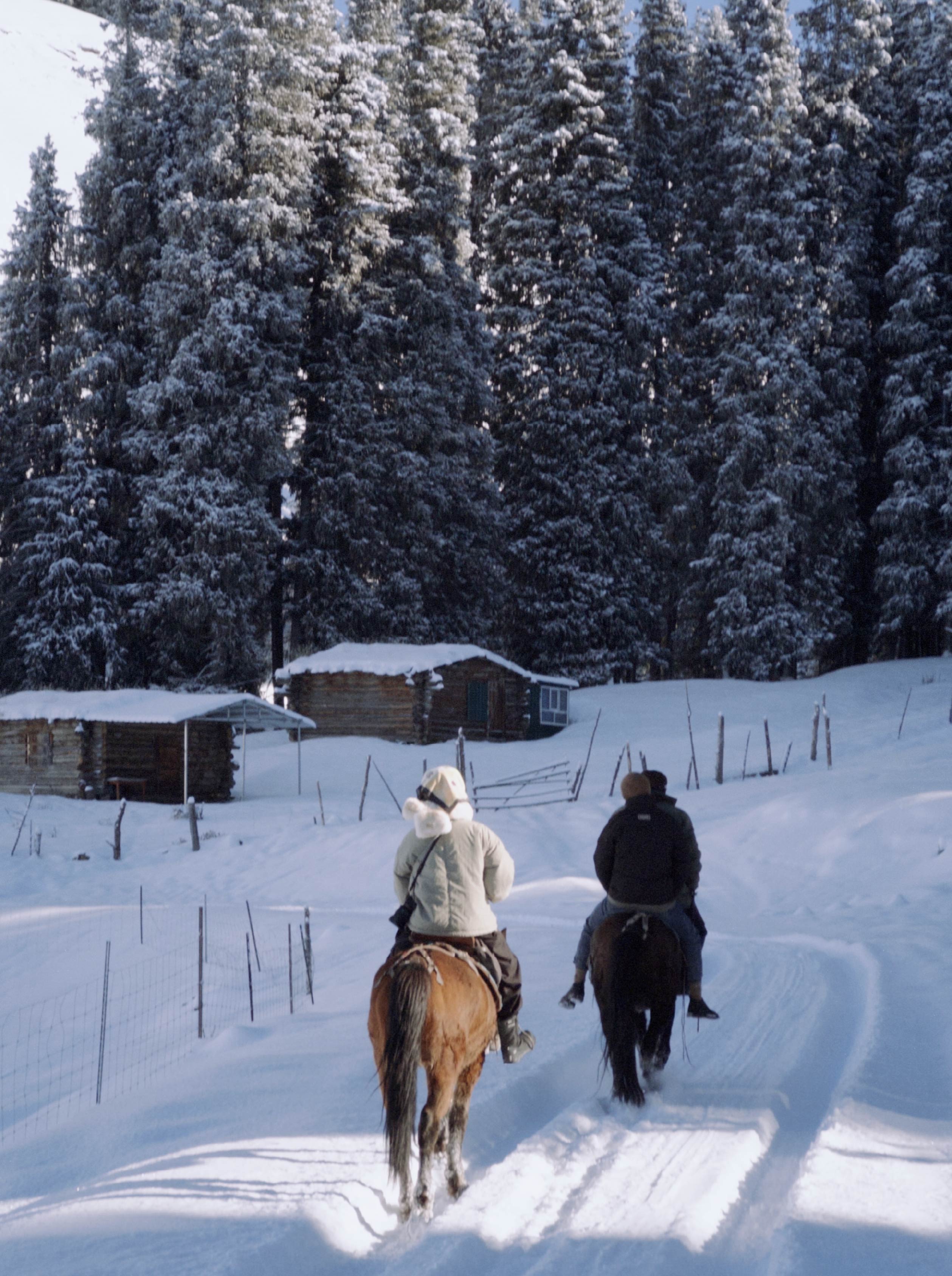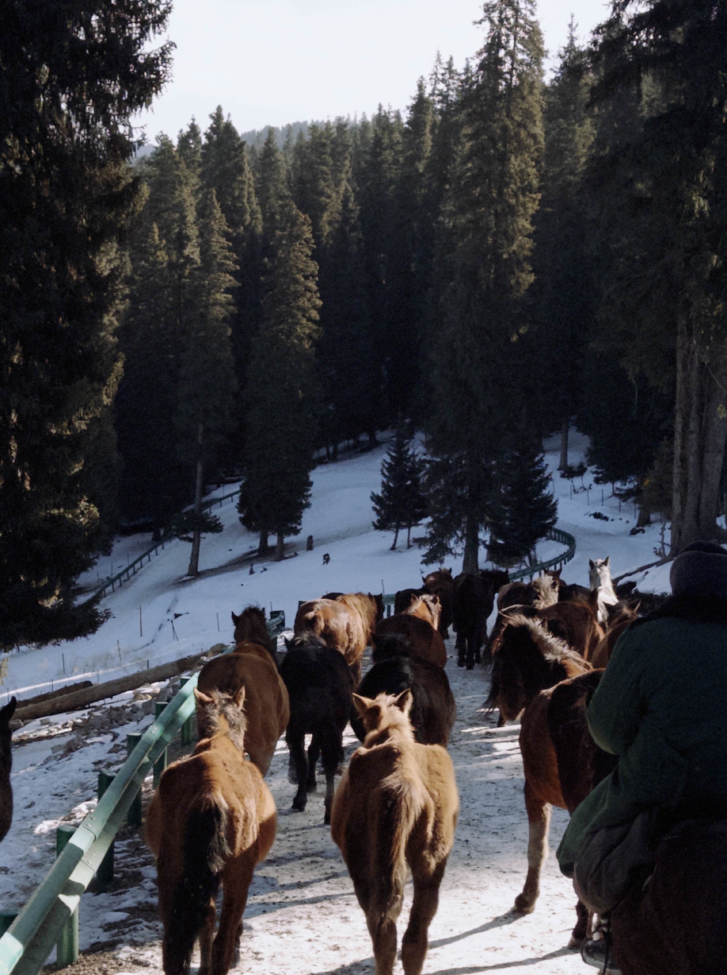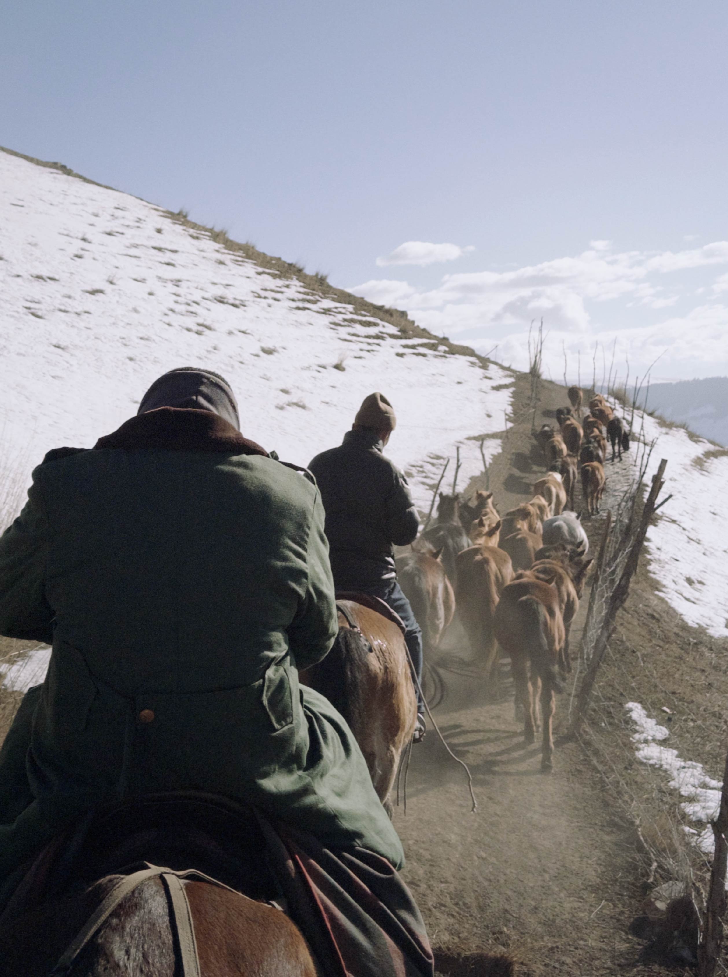 木拉提找了一個開皮卡車的牧民大叔,把我們一路搖搖晃晃地送到冬牧場,這裡距離山下的家有一百多公里,我不敢相信自己竟然要騎著馬,幫忙趕著三十多匹馬一路不停地走回家!