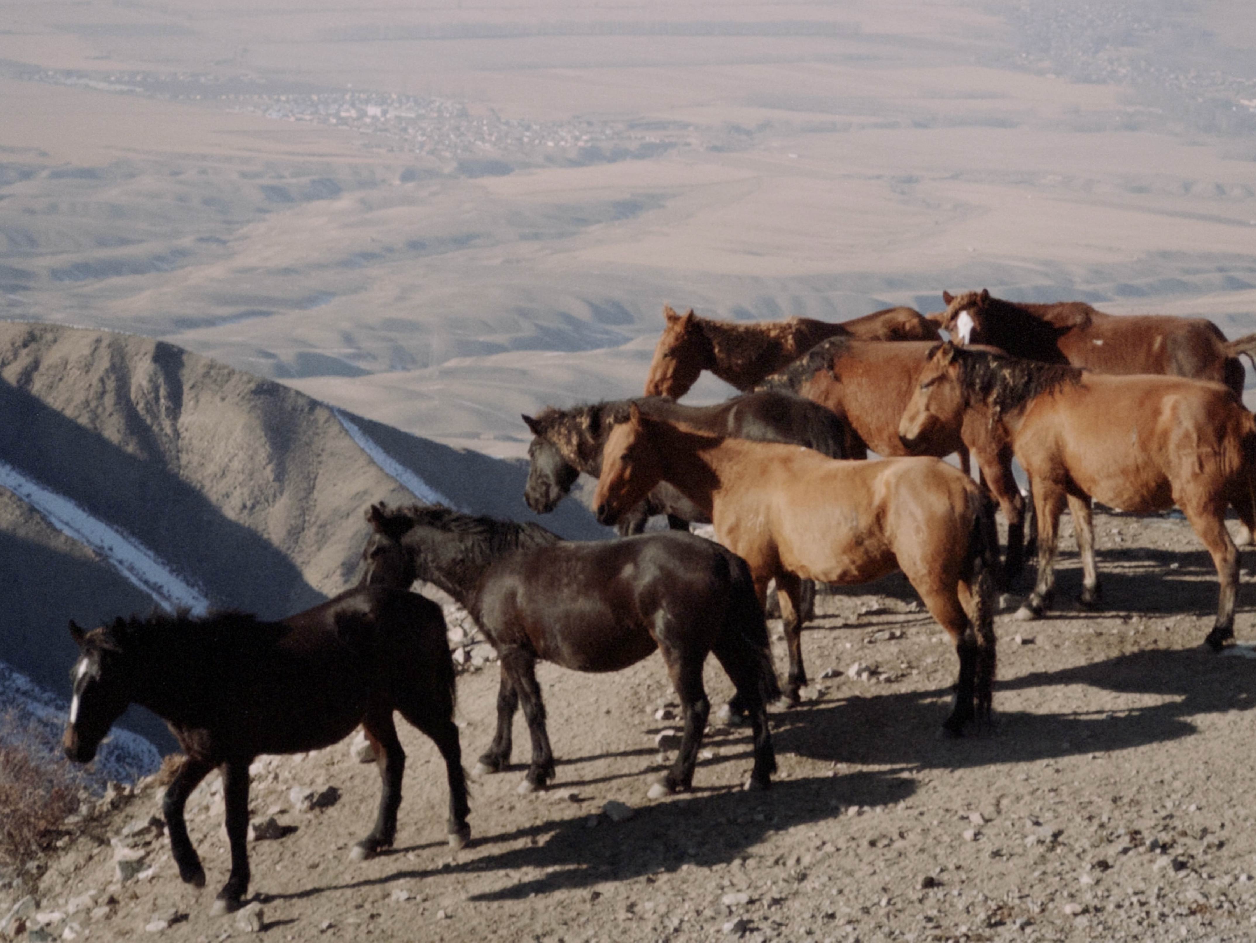和開車走的路不同,帶著馬群得先穿越森林和溪谷、爬上冬牧場旁邊的山頭,接著在上下起伏的喀拉峻草原騎行好長一段路。跟羊比起來,馬走得快也比較聽話,但路途這麼遙遠,脫隊的狀況還是頻頻出現。