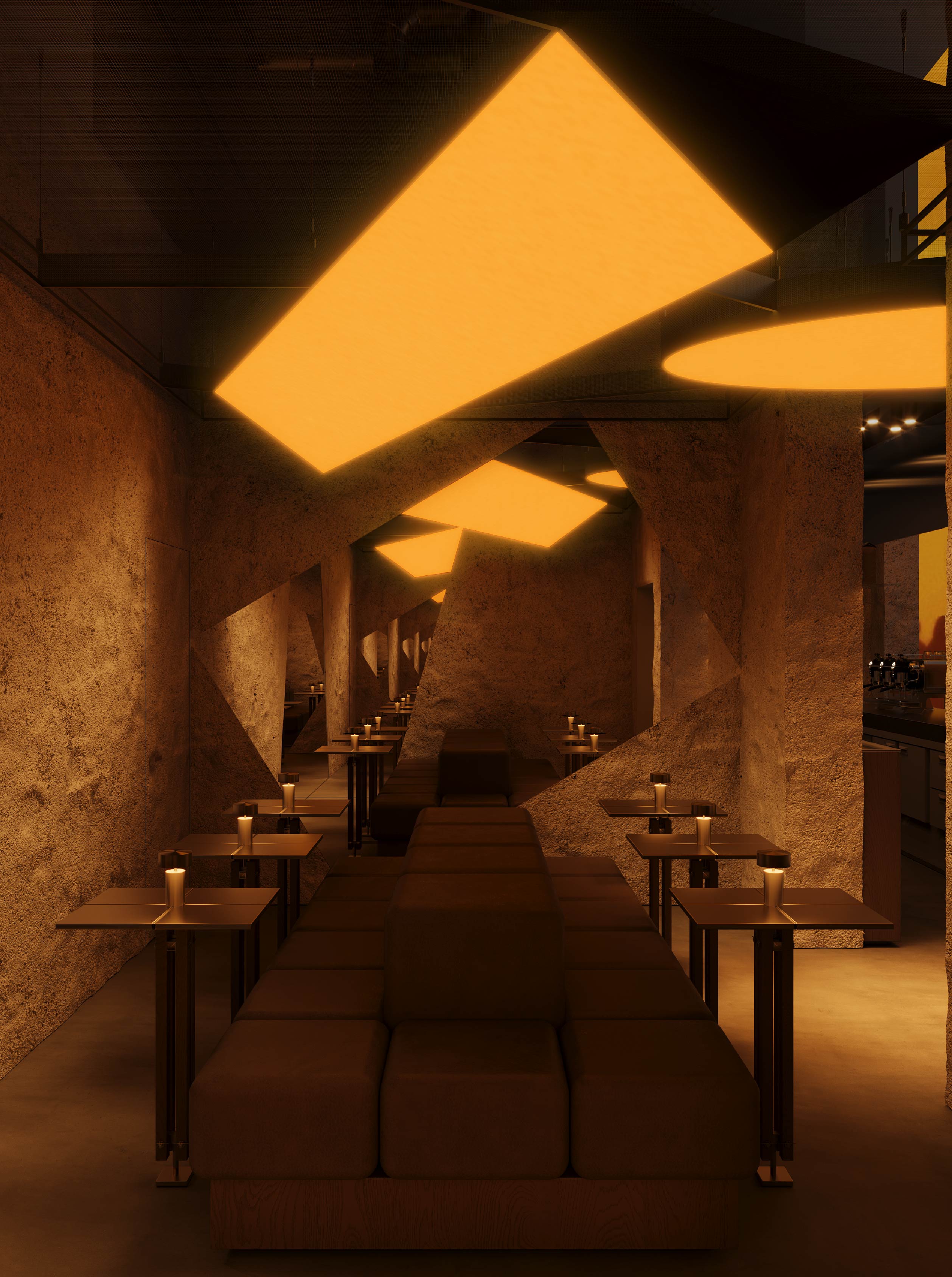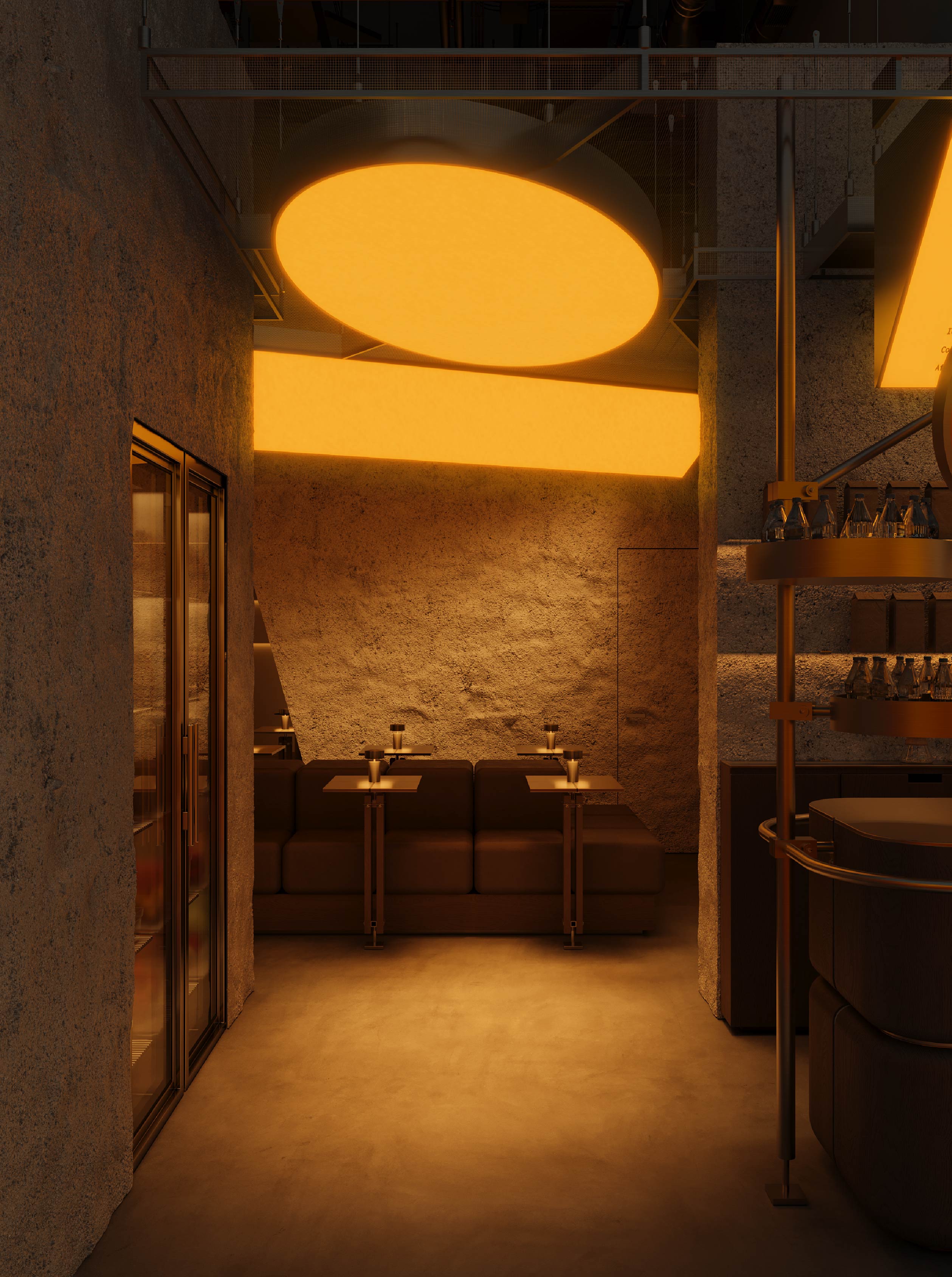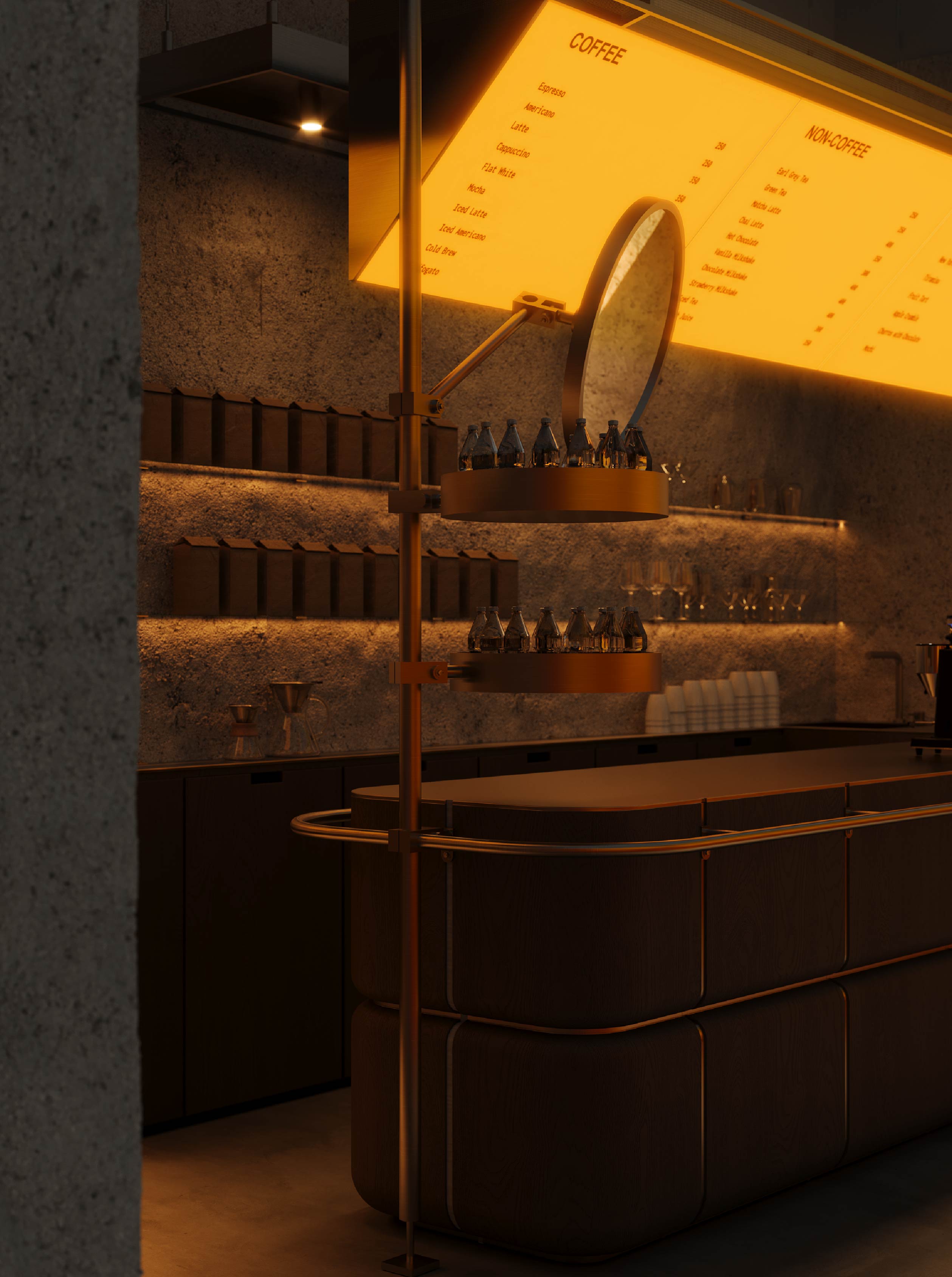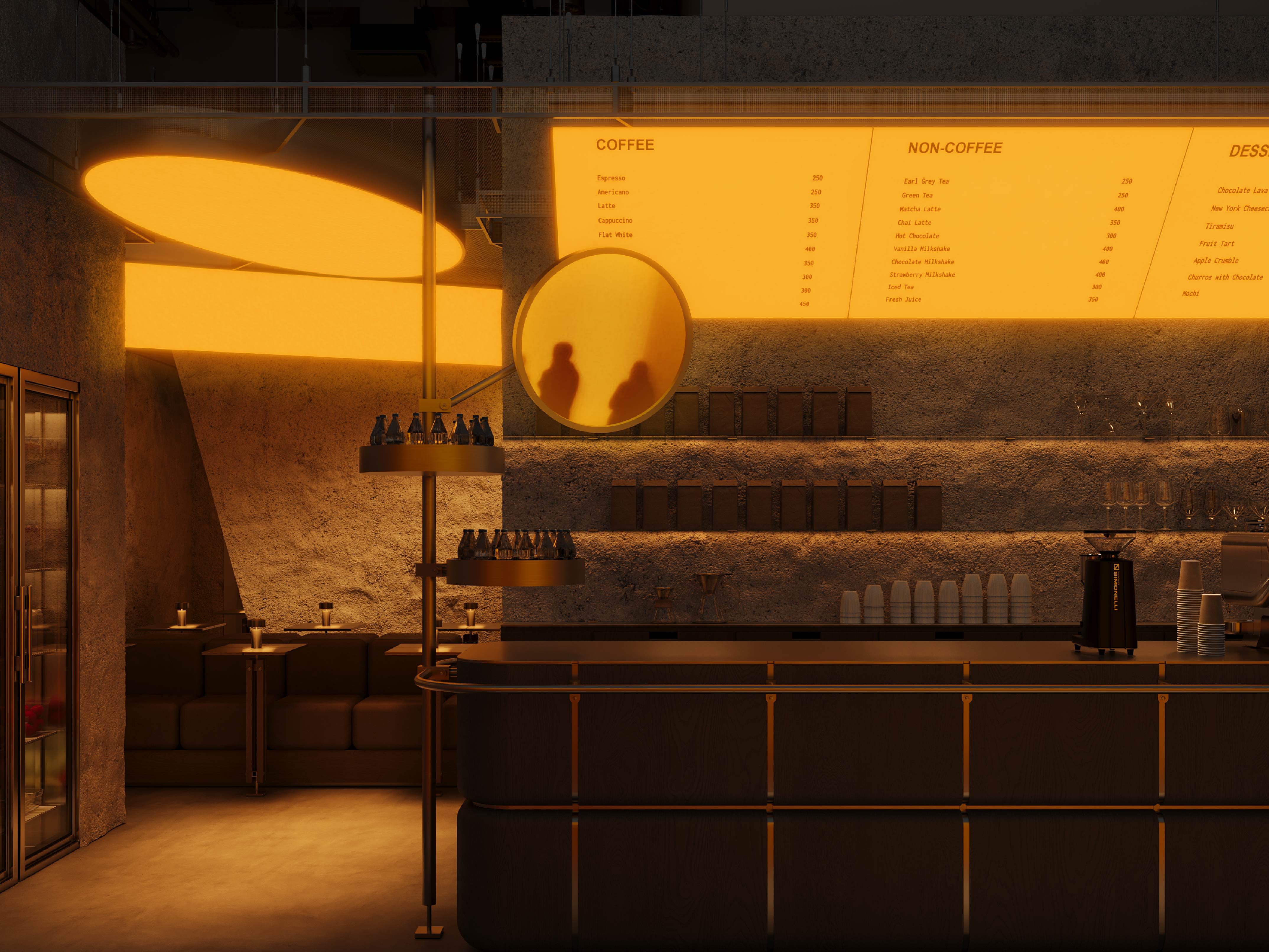 柔和的照明計畫,同時模糊了辦公室與休憩空間之間的界線,像是大家聚在一個溫暖的客廳裡,透過光線與材料共同作用,讓這間咖啡館成為都市生活的一個喘息點,在光與空間的包圍下,喝杯咖啡重新整理心情,又能再度獲得能量。