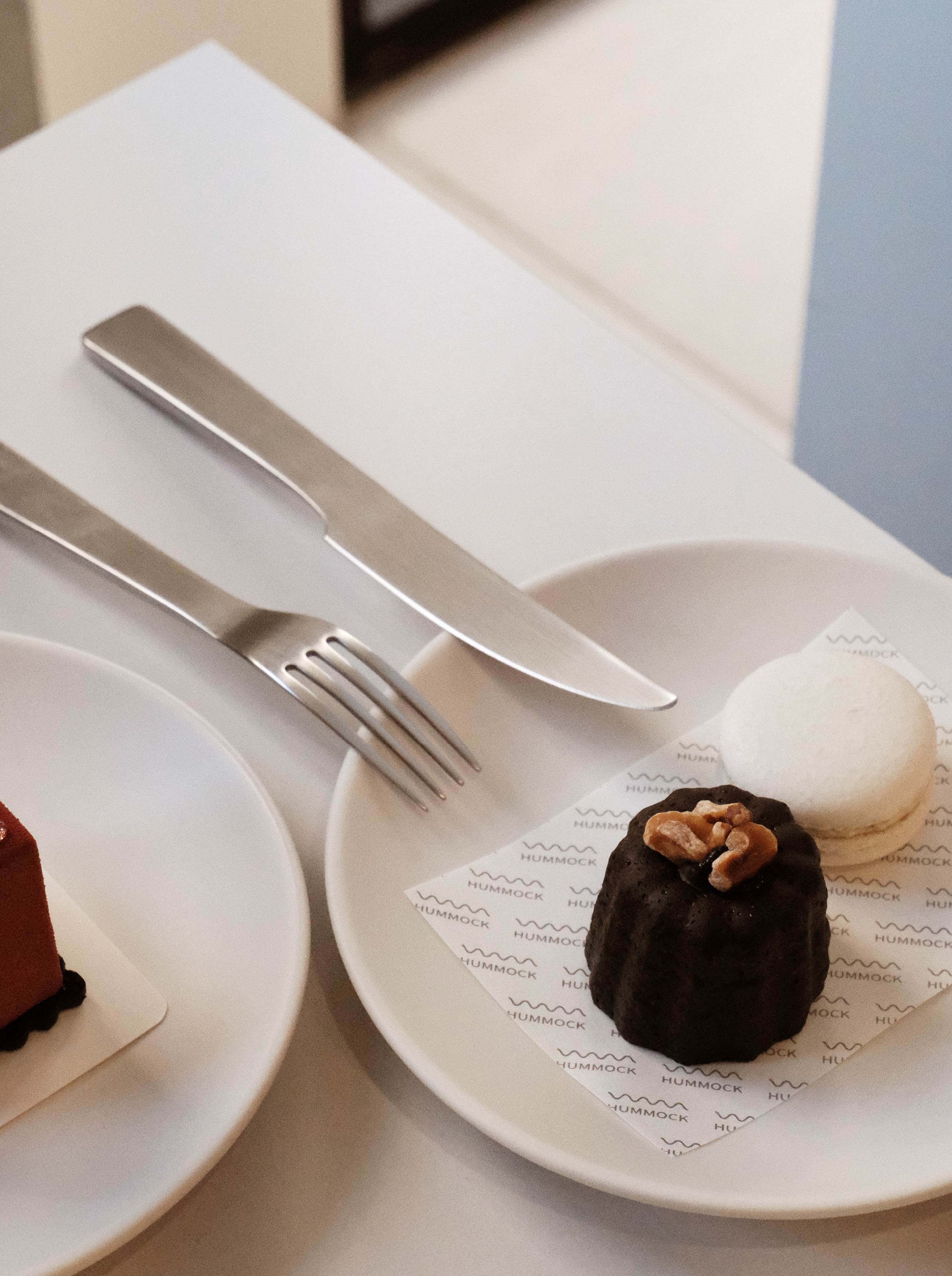 位於北區巷弄中的 Hummock Pastry,店名「Hummock」意指山丘地,象徵旅途中一段值得停留的片刻。隱身在安靜的街區裡,推門而入便能感受到空間所營造的寧靜節奏,以白牆、淺色木質與自然光構築簡潔基調,讓人不自覺放慢腳步。