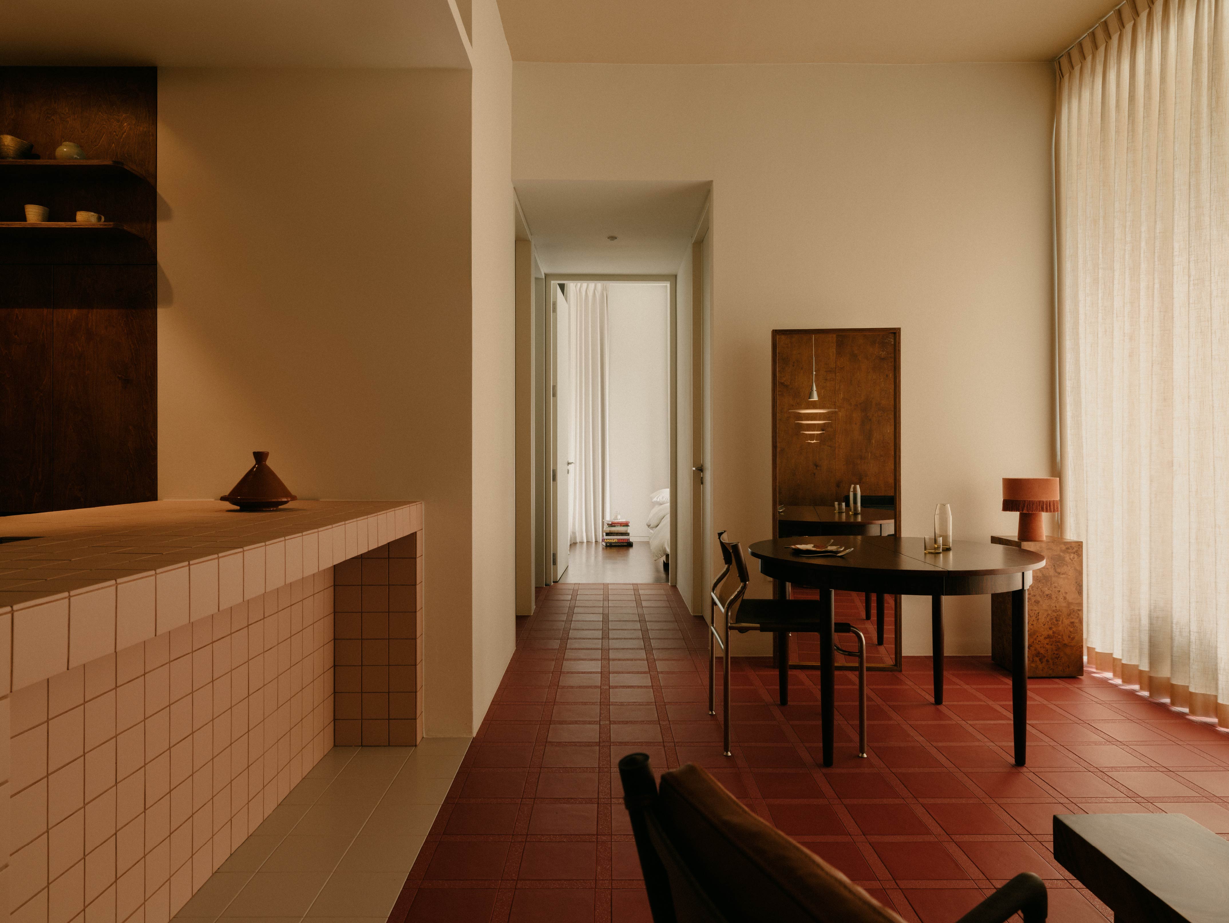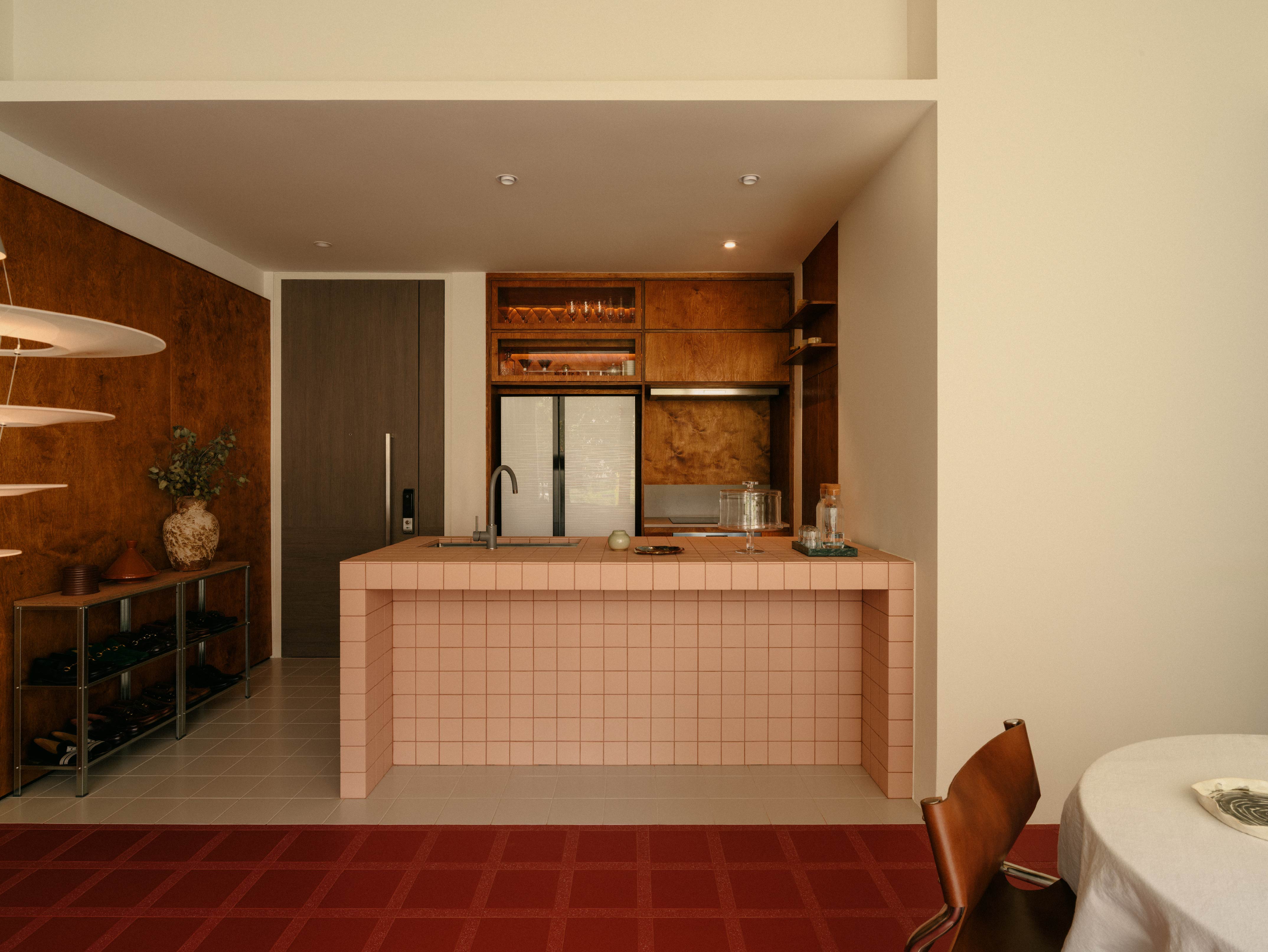 緻肌理的磁磚,看似低調卻細膩的質感,也強化空間的層次。