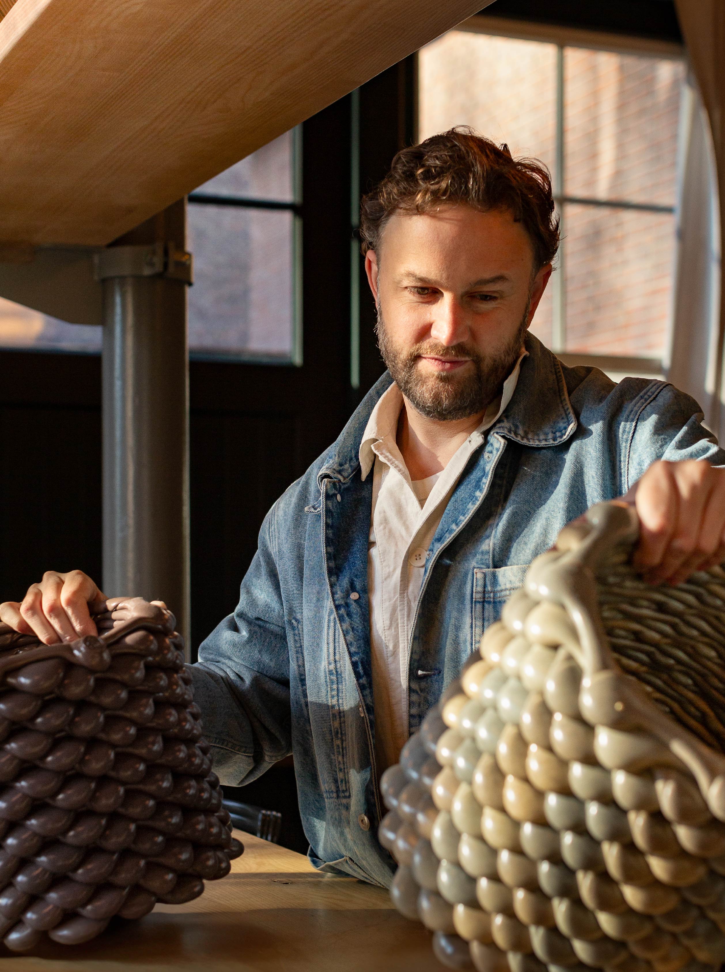 在 KOOIJ 的創作中,機械、材料與製作過程本身都被視為作品的一部分。品牌的作品建立在低解析度 3D 擠出與熱壓塑板兩種成形邏輯之上:前者透過改造機械臂的逐層堆疊,刻意保留低解析度的處理狀態,使層理與軌跡成為作品形式的一部分;後者則將回收塑膠壓製為實心板材,使色彩與紋理在壓縮與再整合之中形成具有流動性的構成。品牌同時建立內部循環系統,使再生塑膠在工坊內持續被轉化與再利用,讓原本常與一次性消費連結的塑膠,轉化為兼具功能性與典藏意義的當代作品。KOOIJ 作品現已被 Museum of Modern Art(MoMA)、Stedelijk Museum Amsterdam、Vitra Design Museum等機構典藏,本次為品牌首次於台灣正式展出。