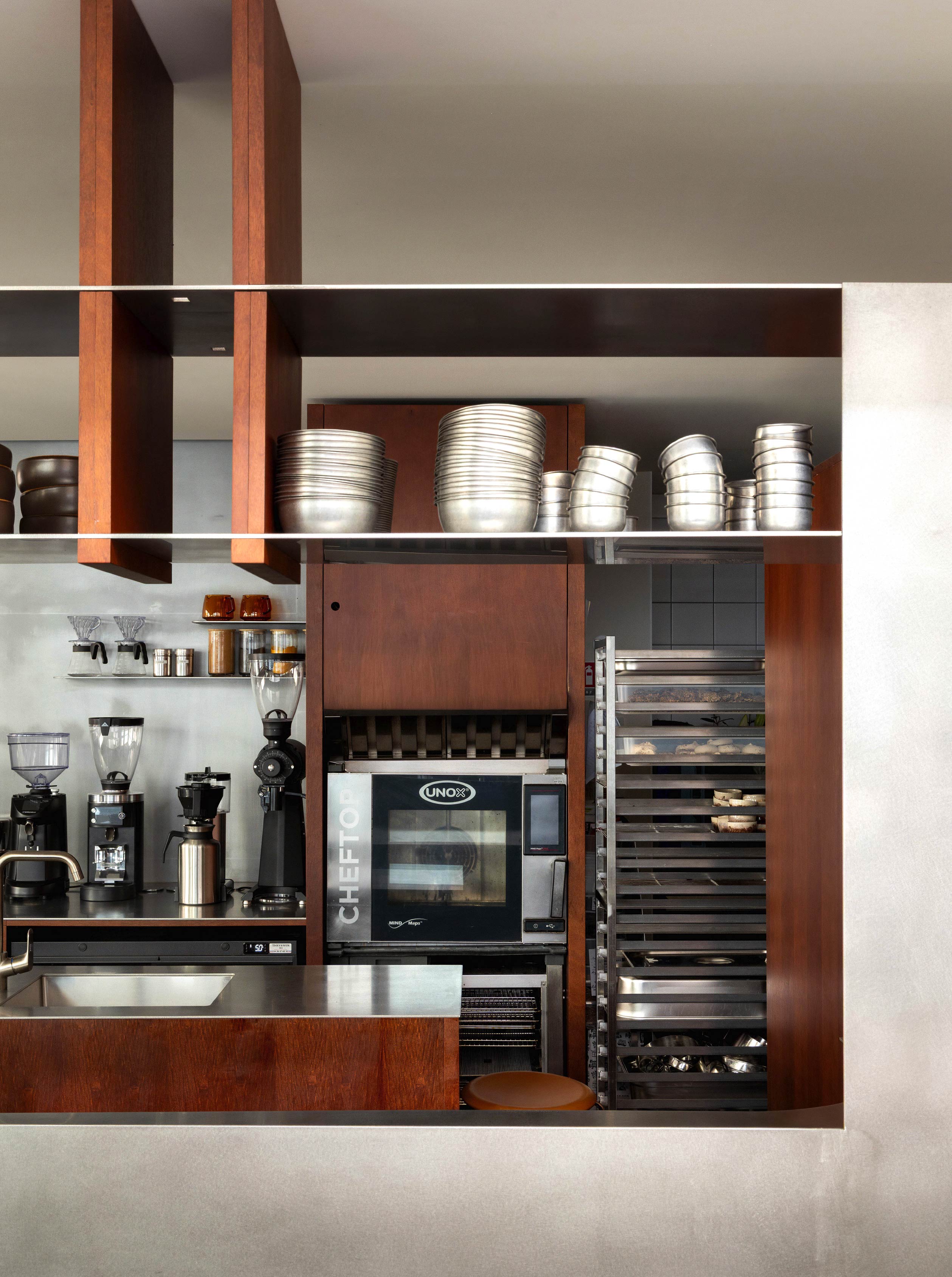開啟高度與桌面齊平,顧客在使用時能同時感受到室內與室外的氛圍。