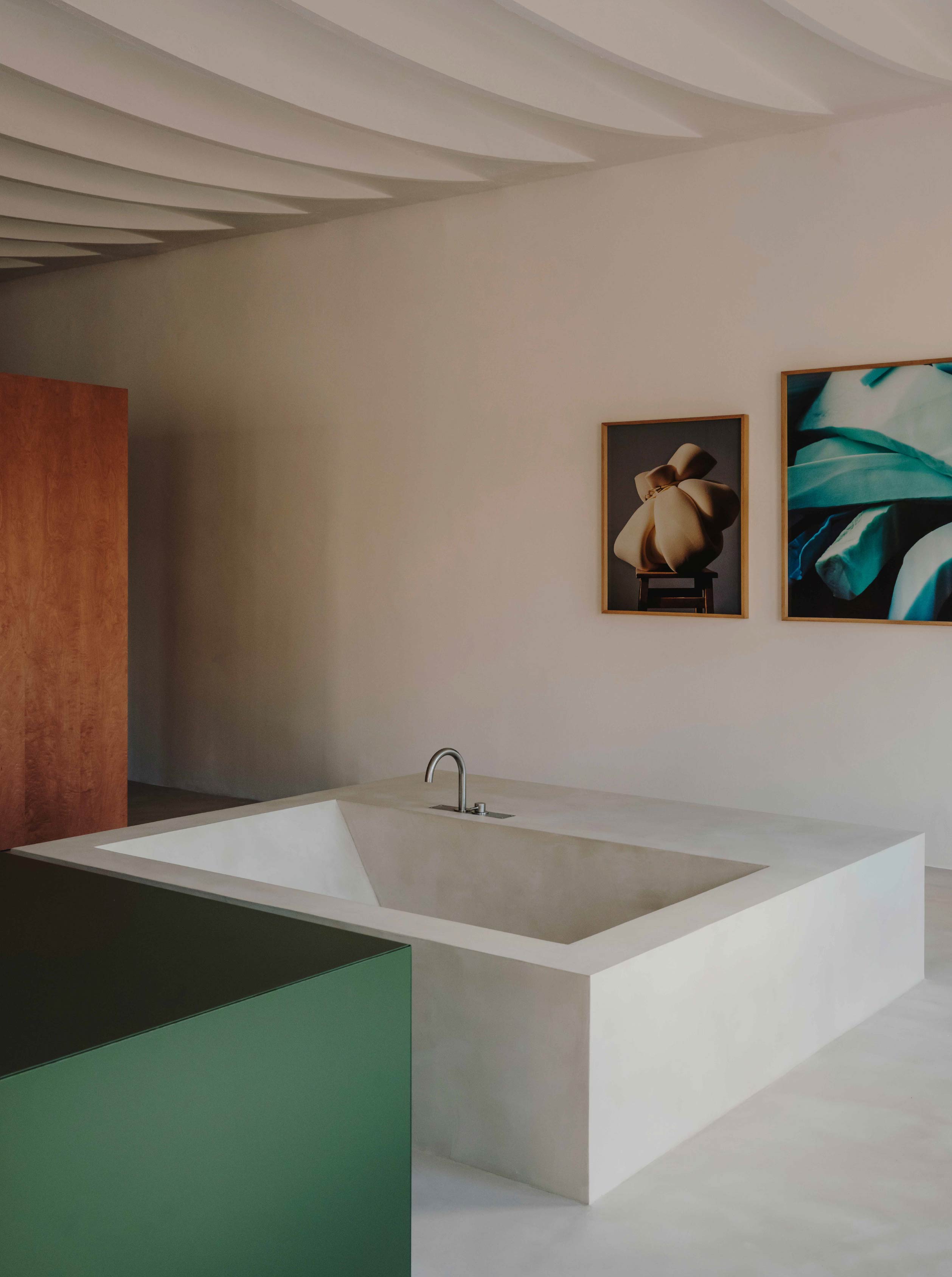 另外像是浴缸、淋浴和水槽也都是原地手工製作,同時