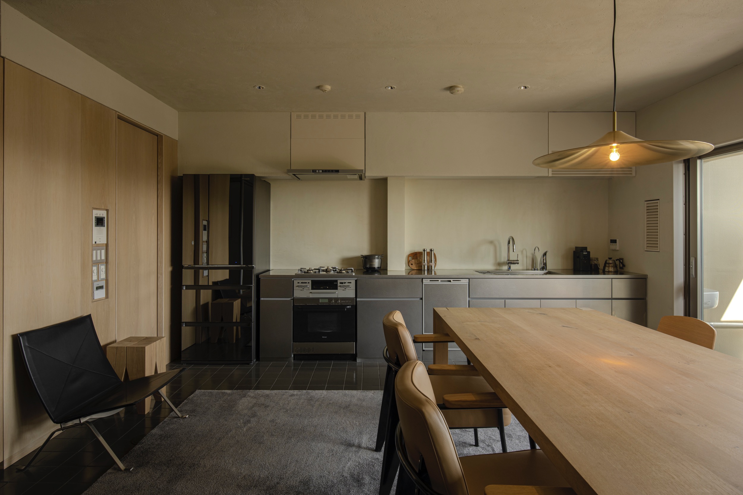 經手設計的Button Design提到,「我們決定選擇沒有特定臥室的生活方式,就像日本的老房子一樣。」因此重新規劃格局,不做客廳、不放沙發,僅保留開放式的餐廳與廚房,一旁則設置架高的榻榻米和室,同時利用障子門巧妙區隔空間。
